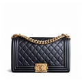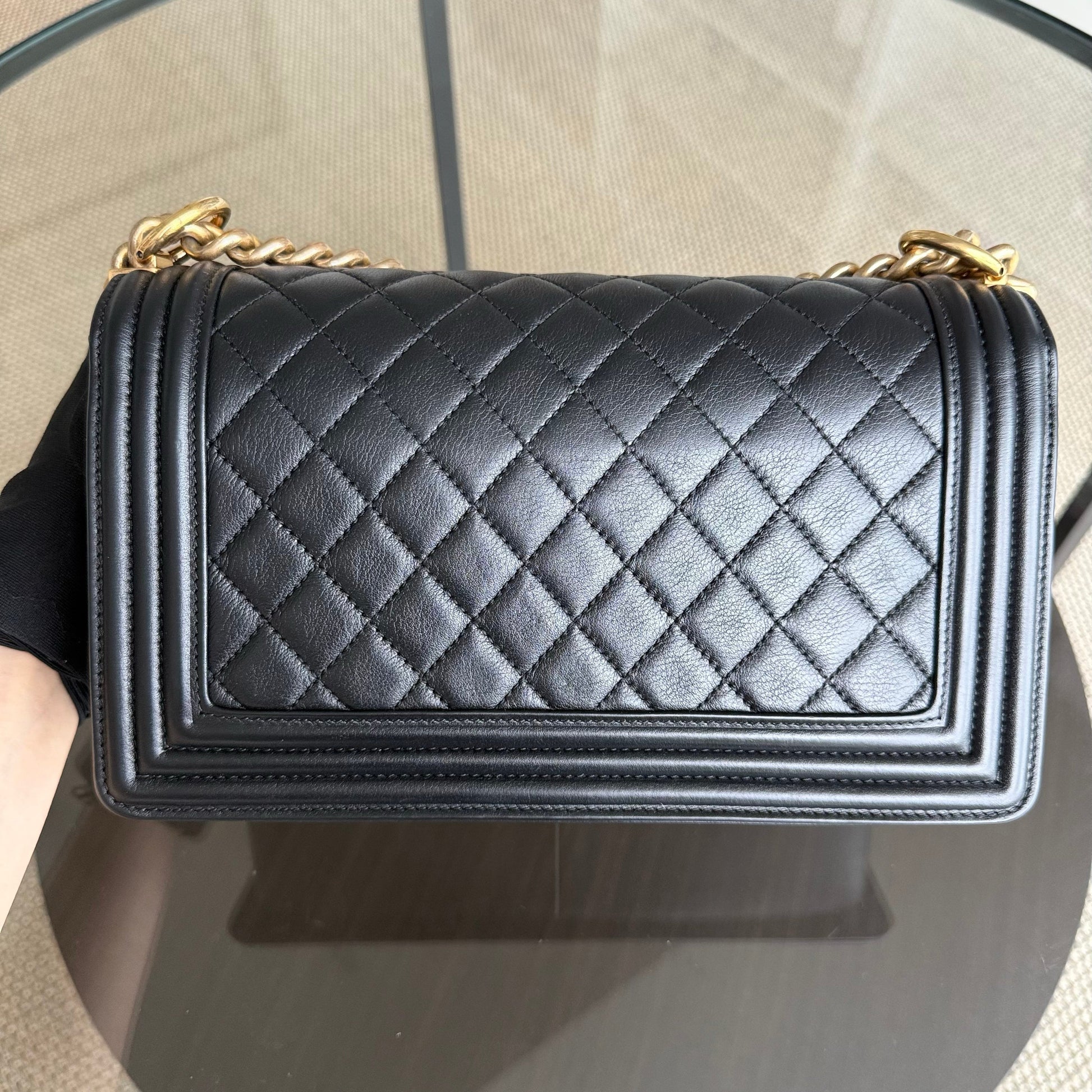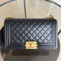 Chanel Boy Medium - Calfskin 25CM Quilted Black Gold Hardware Series 25
