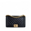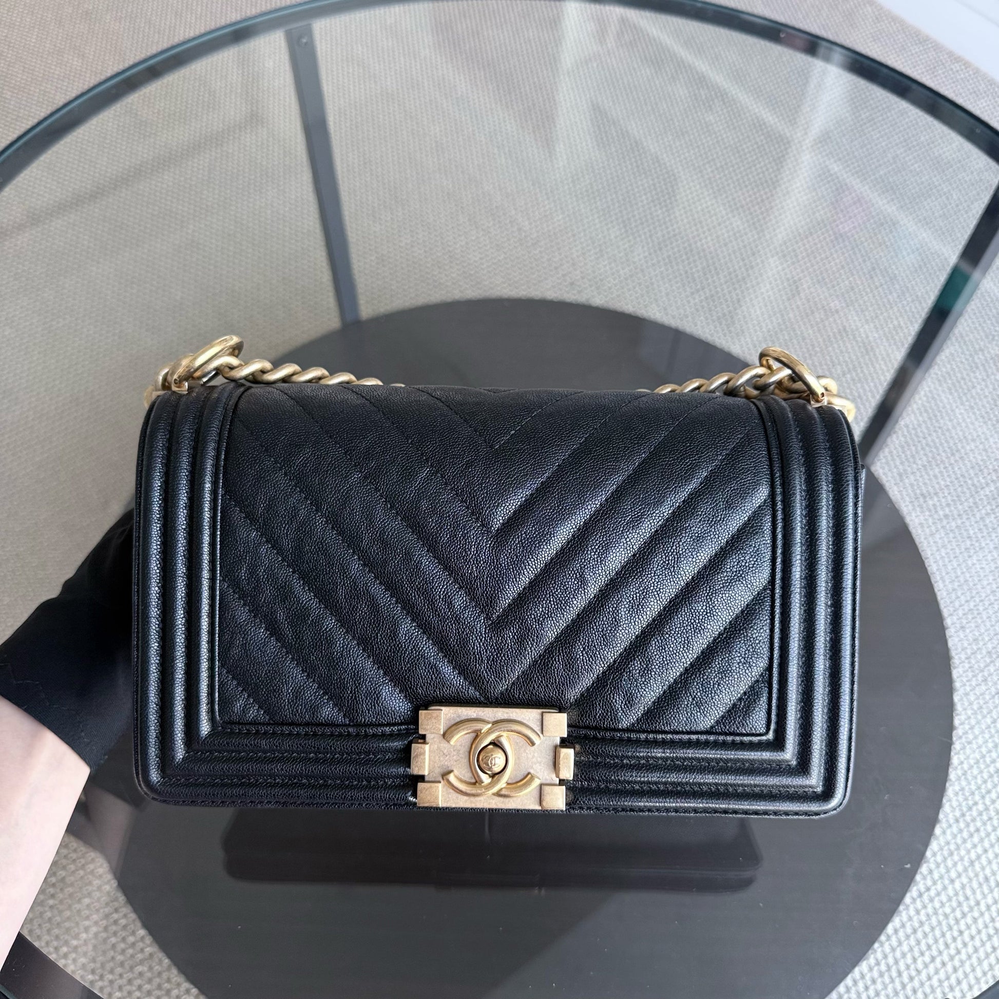 Chanel Boy Medium - Caviar 25CM Chevron Black Gold Hardware Series 26