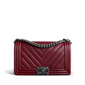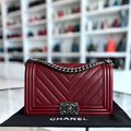 Chanel Boy Medium - Caviar 25CM Chevron Burgundy Dark Red Ruthenium Silver Hardware Series 24