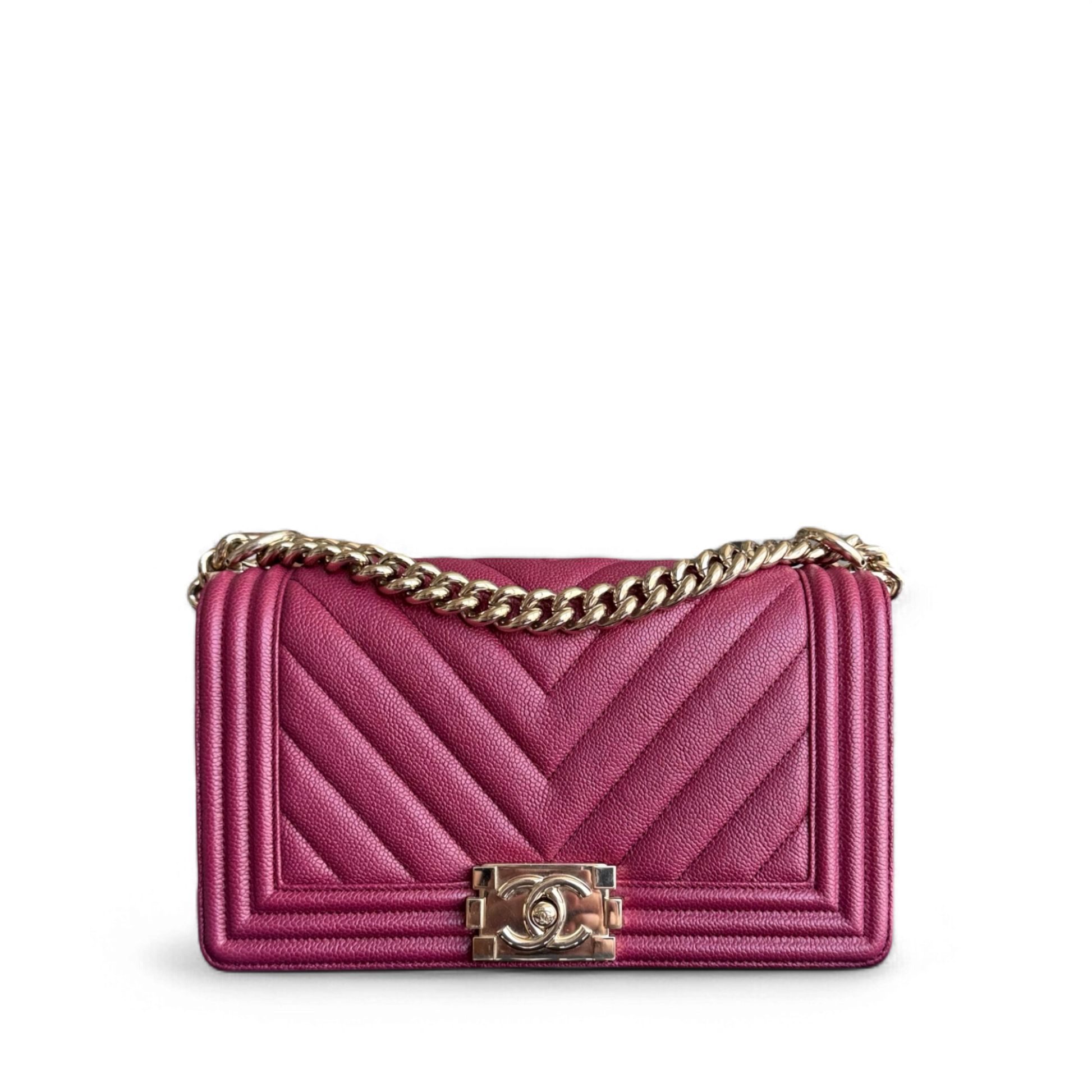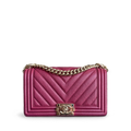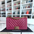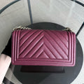 Chanel Boy Medium - Caviar 25CM Chevron Burgundy Gold Hardware Series 24