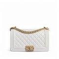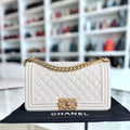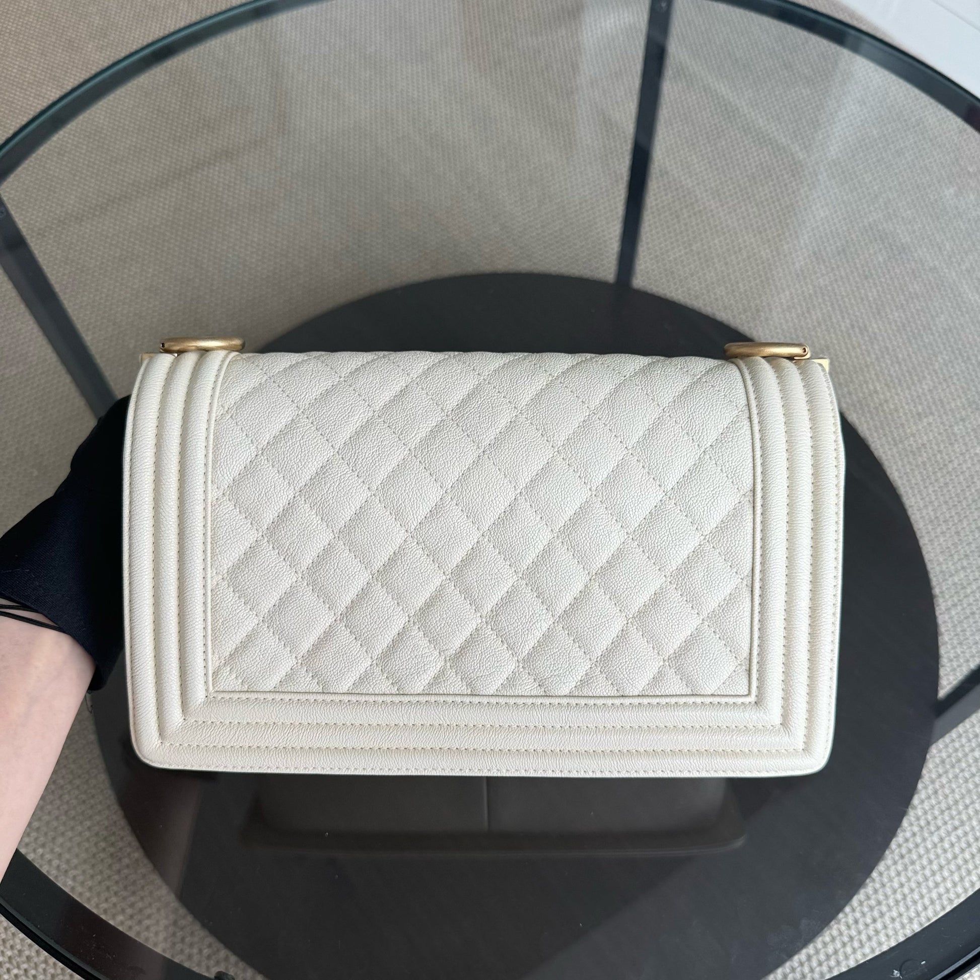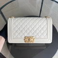 Chanel Boy Medium - Caviar 25CM Cream White Aged Gold Hardware Series 26