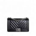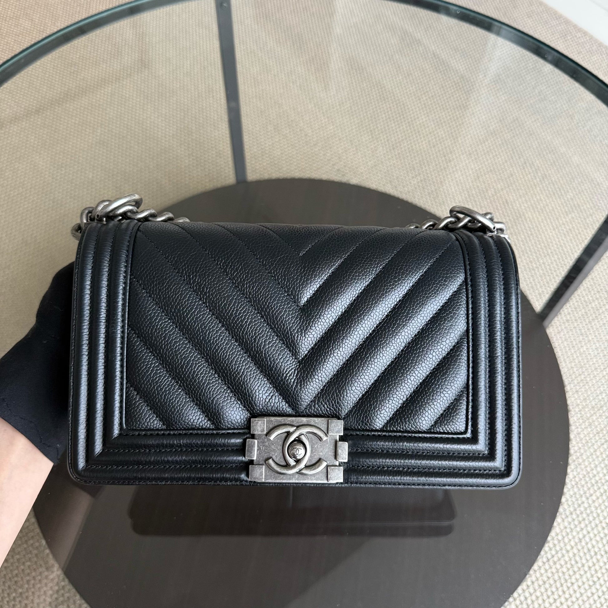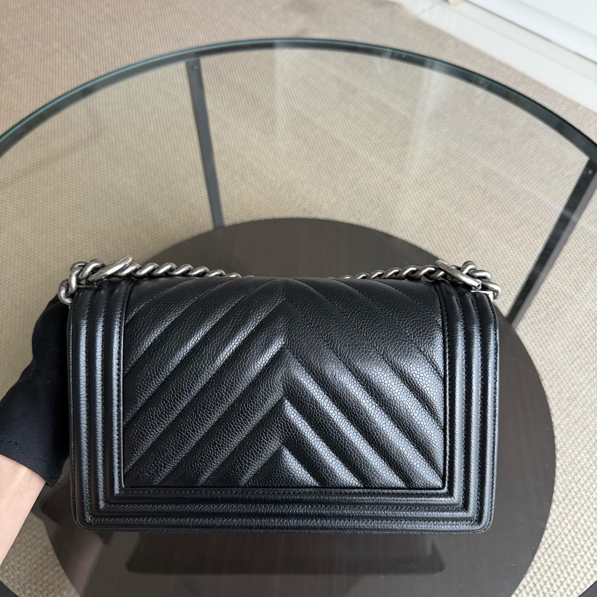 Chanel Boy Medium - Caviar 25CM Grained Calfskin Chevron Black Ruthenium Silver Hardware Series 28