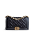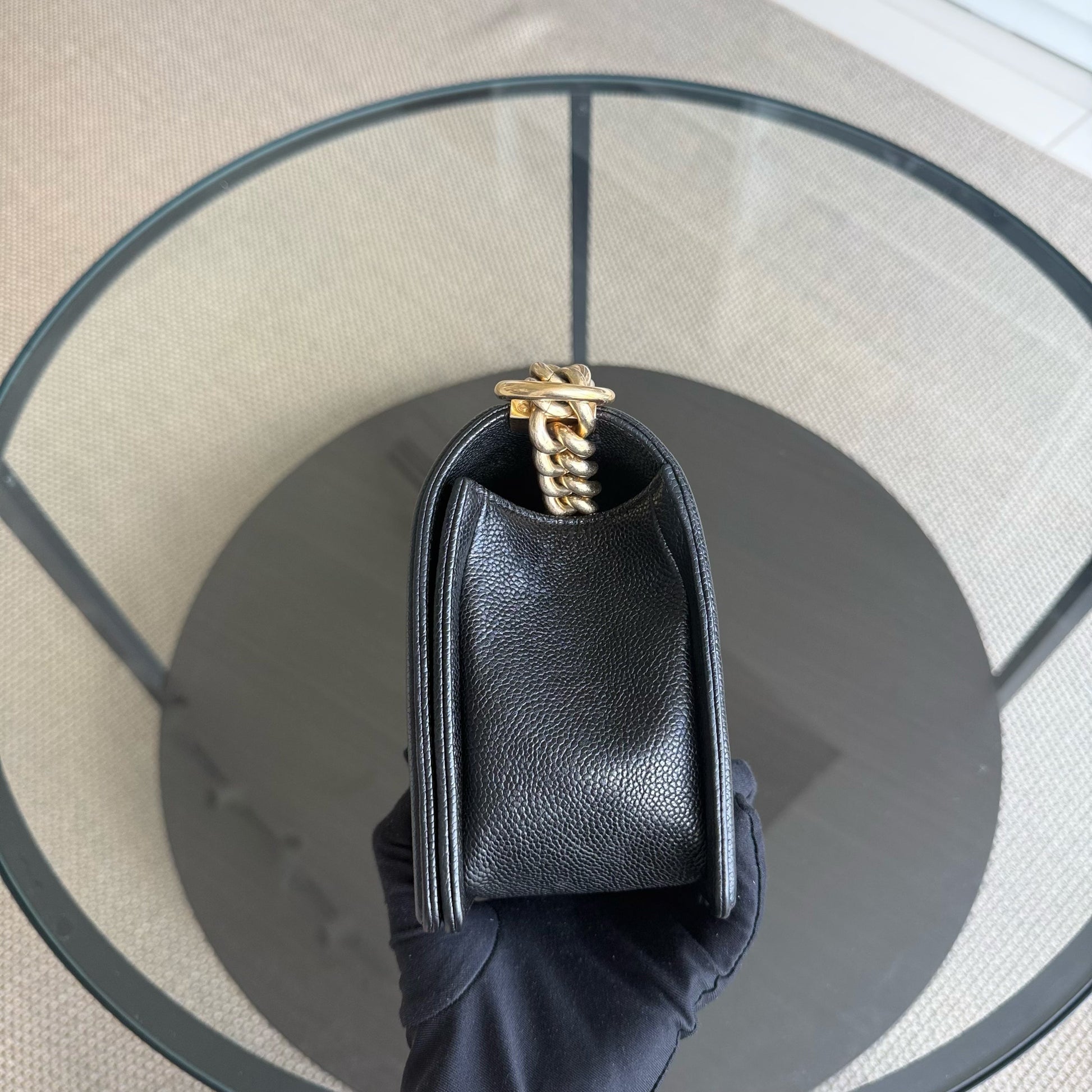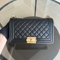 Chanel Boy Medium - Caviar 25CM Quilted Black Aged Gold Hardware Series 23