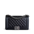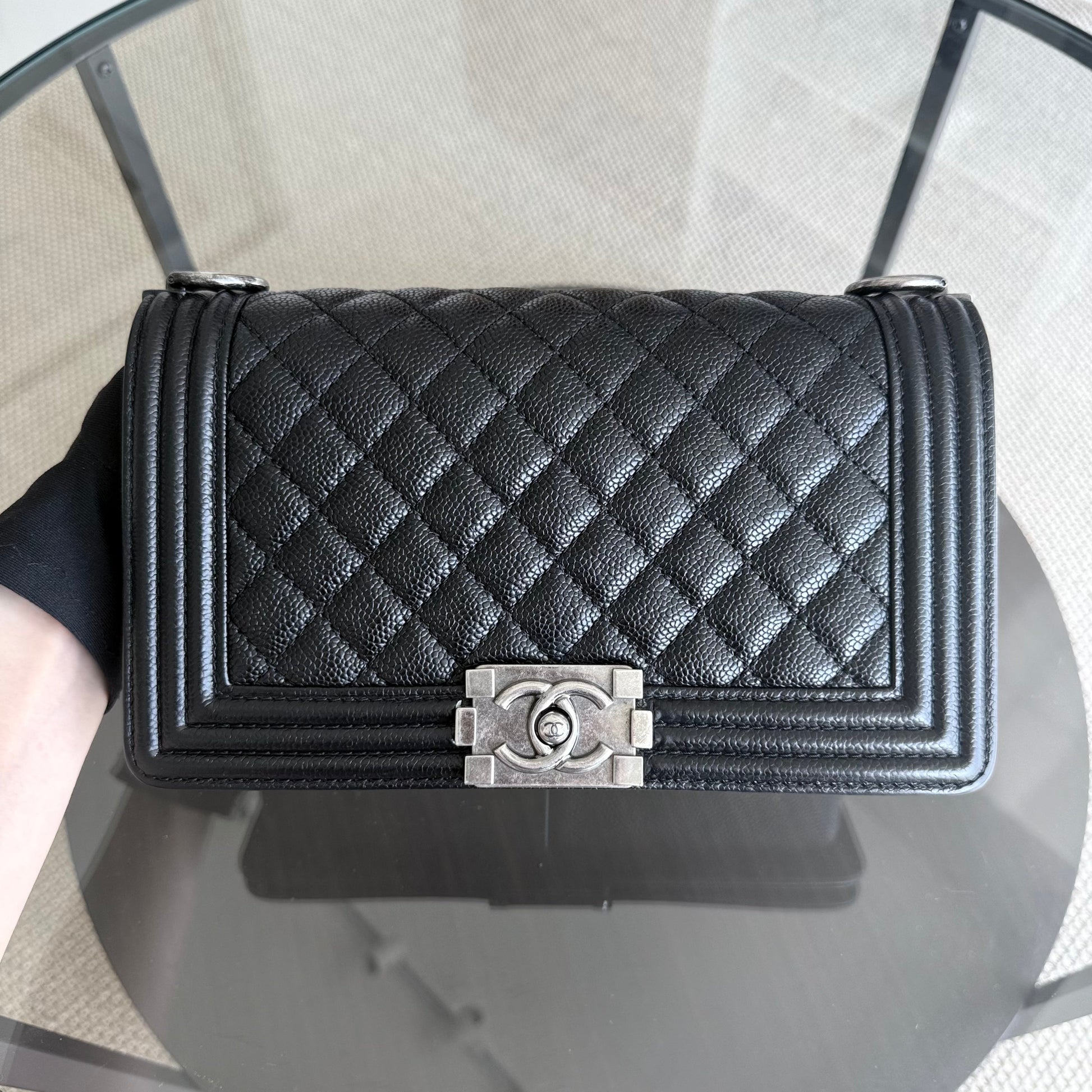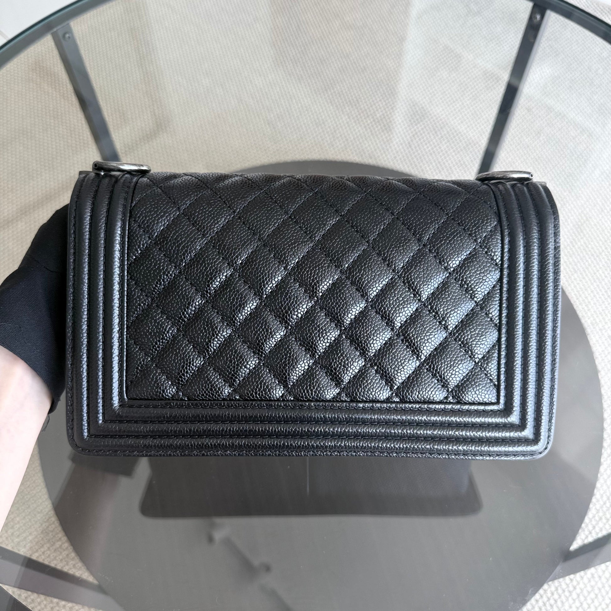 Chanel Boy Medium - Caviar 25CM Quilted Black Ruthenium Silver Hardware Series 19