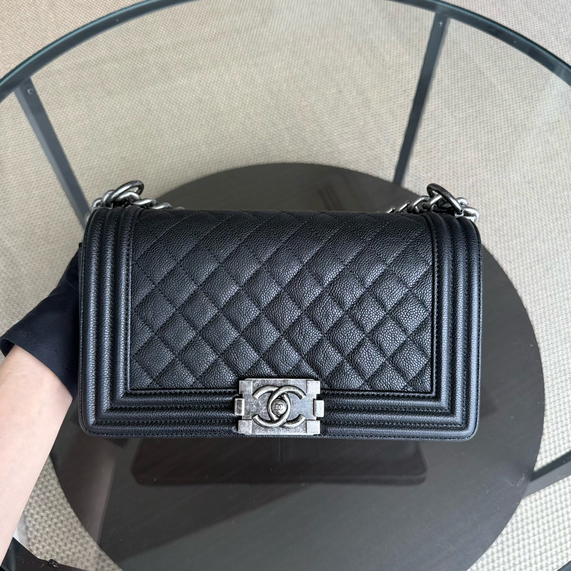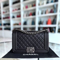 Chanel Boy Medium - Caviar 25CM Quilted Black Ruthenium Silver Hardware Series 23