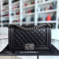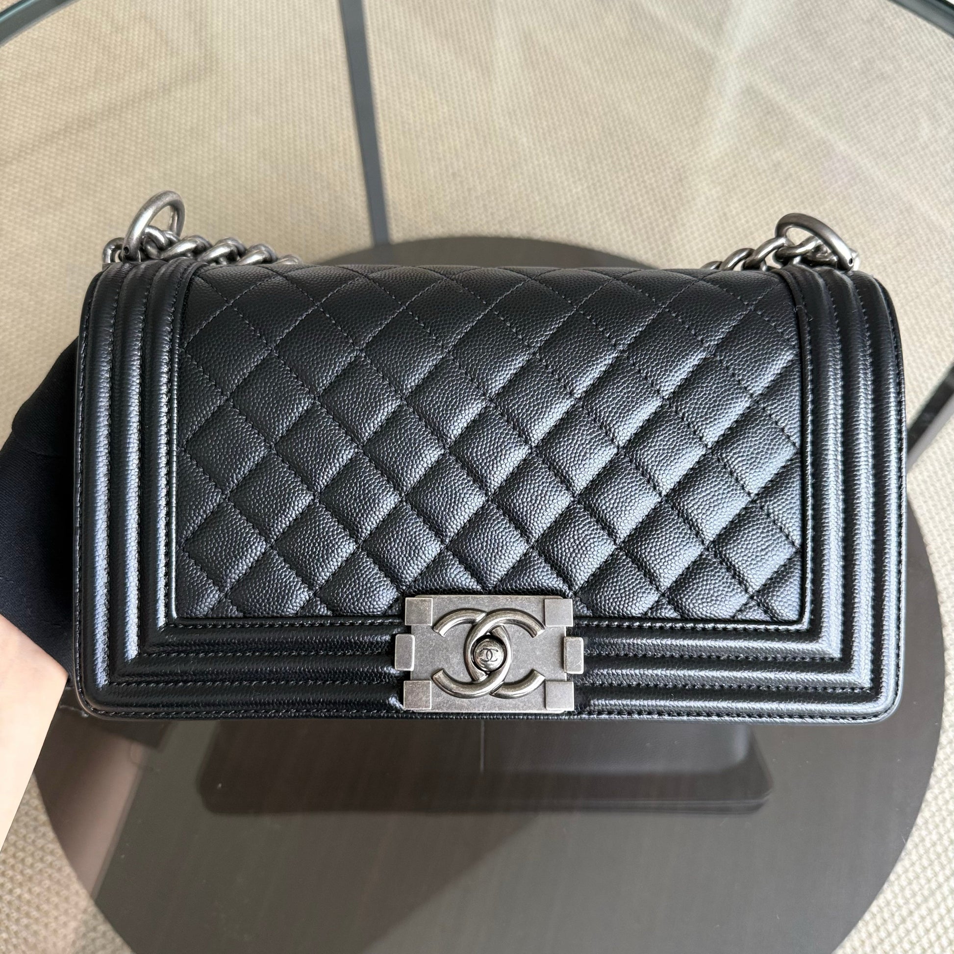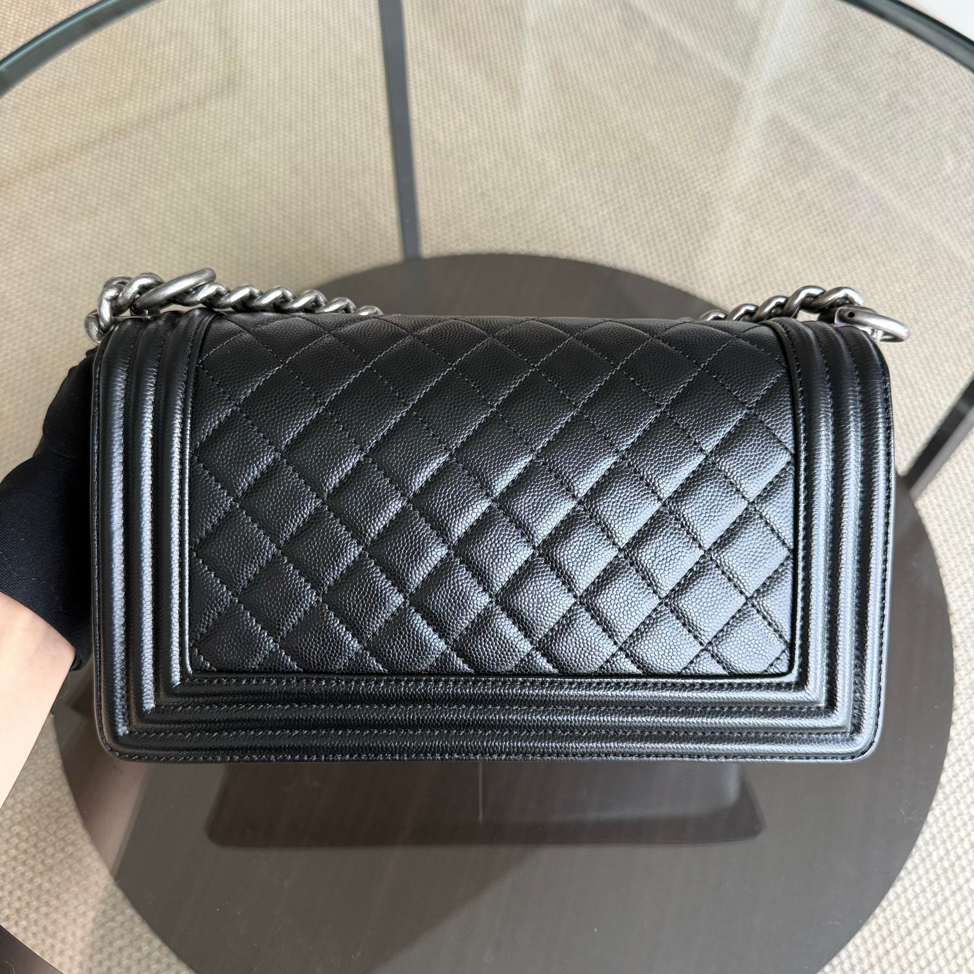 Chanel Boy Medium - Caviar 25CM Quilted Black Ruthenium Silver Hardware Series 25