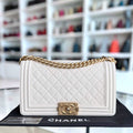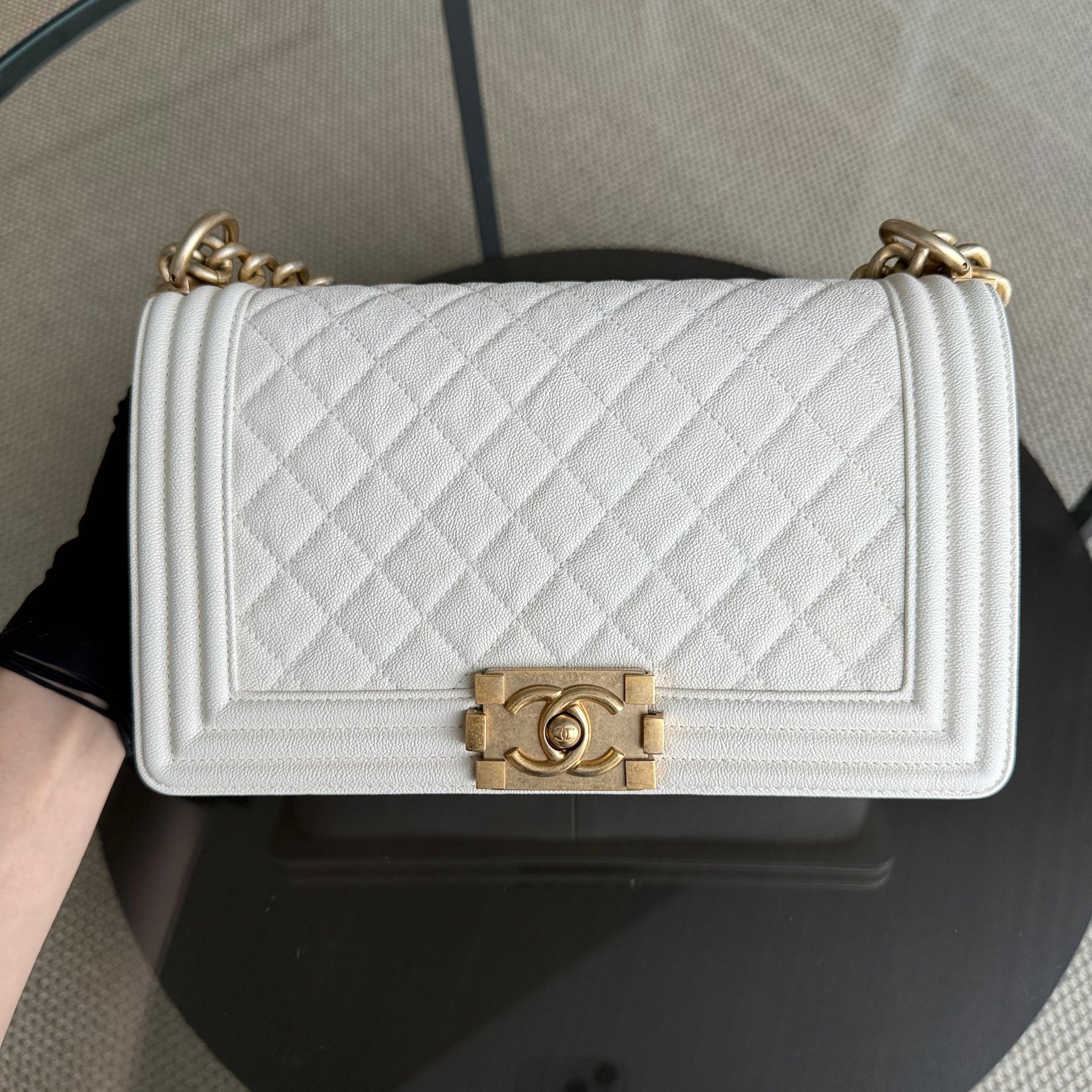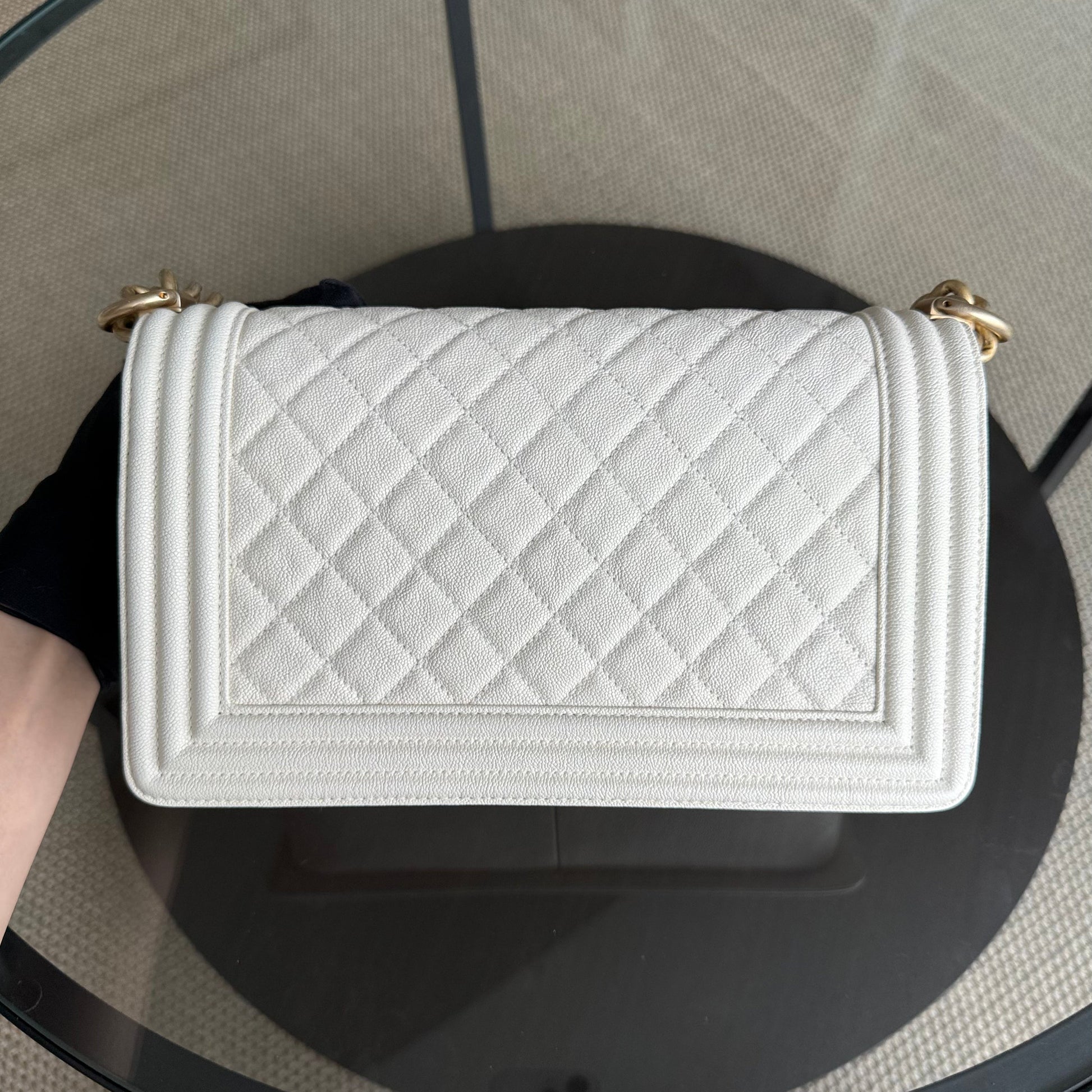 Chanel Boy Medium - Caviar 25CM Quilted Cream White Aged Gold Hardware Series 27