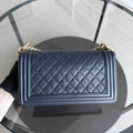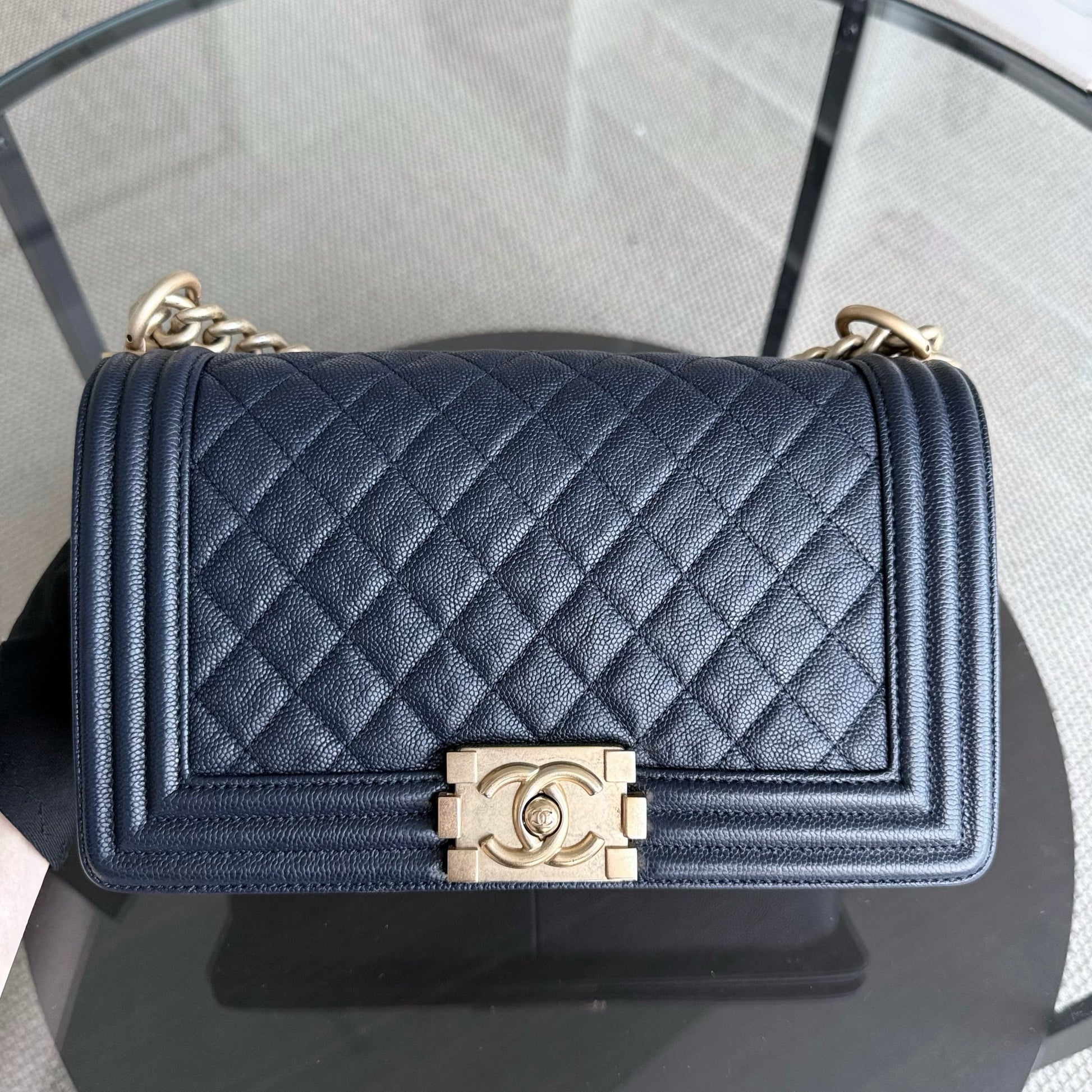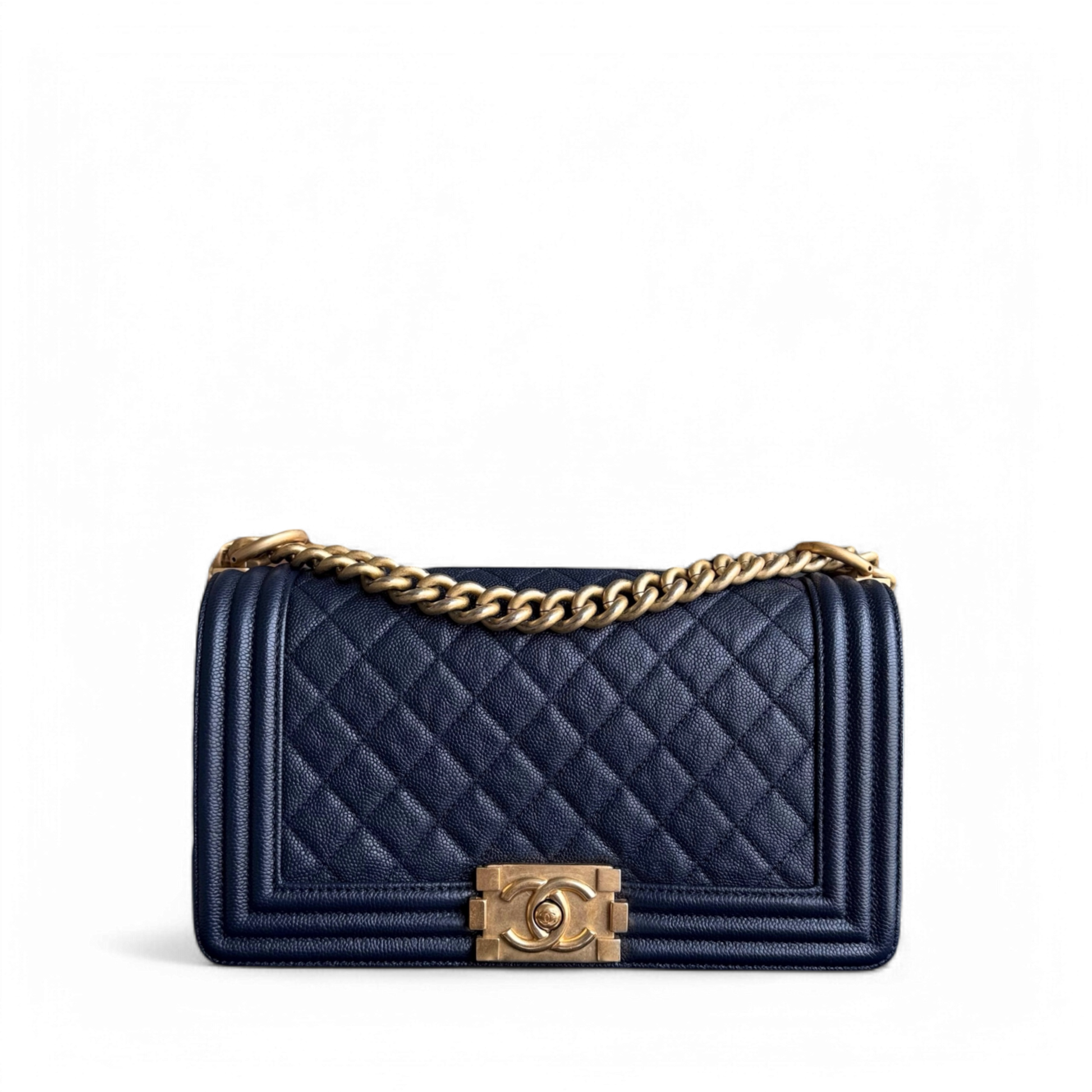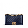 Chanel Boy Medium - Caviar 25CM Quilted Dark Blue Gold Hardware Series 25
