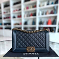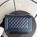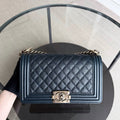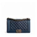 Chanel Boy Medium - Caviar 25CM Quilted Dark Blue Ruthenium Gold Hardware Series 19