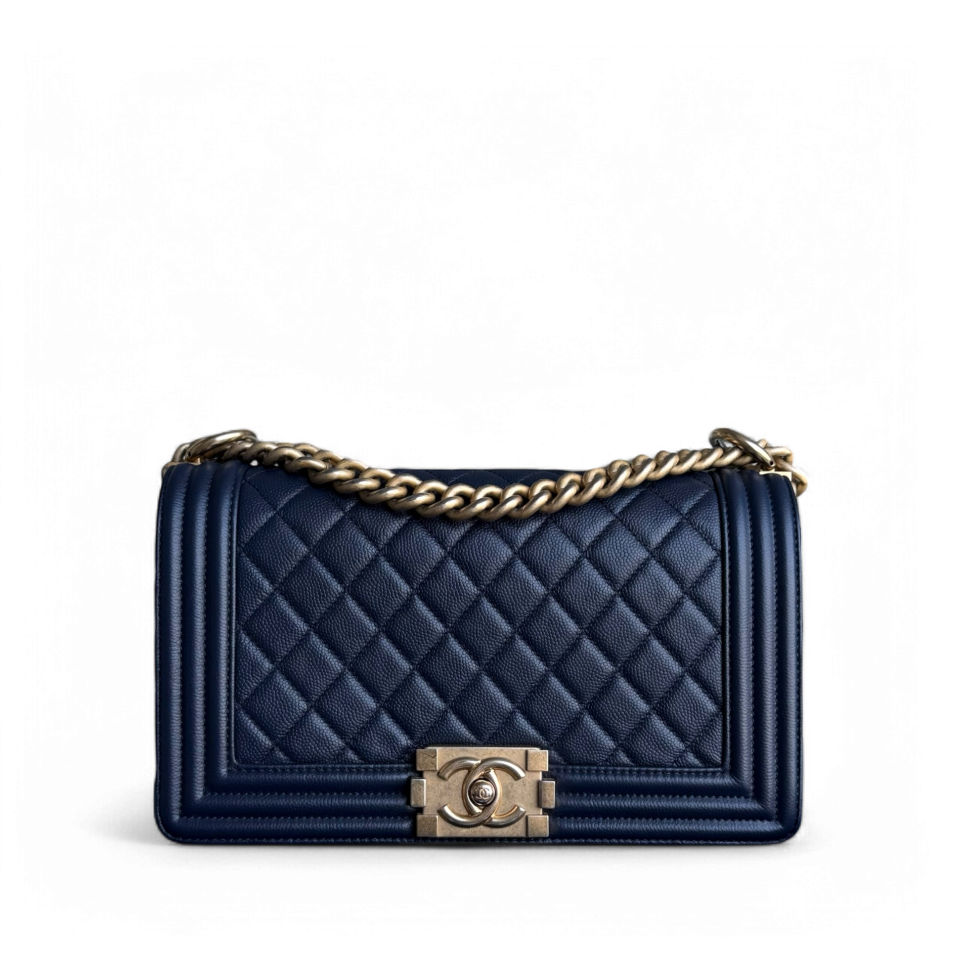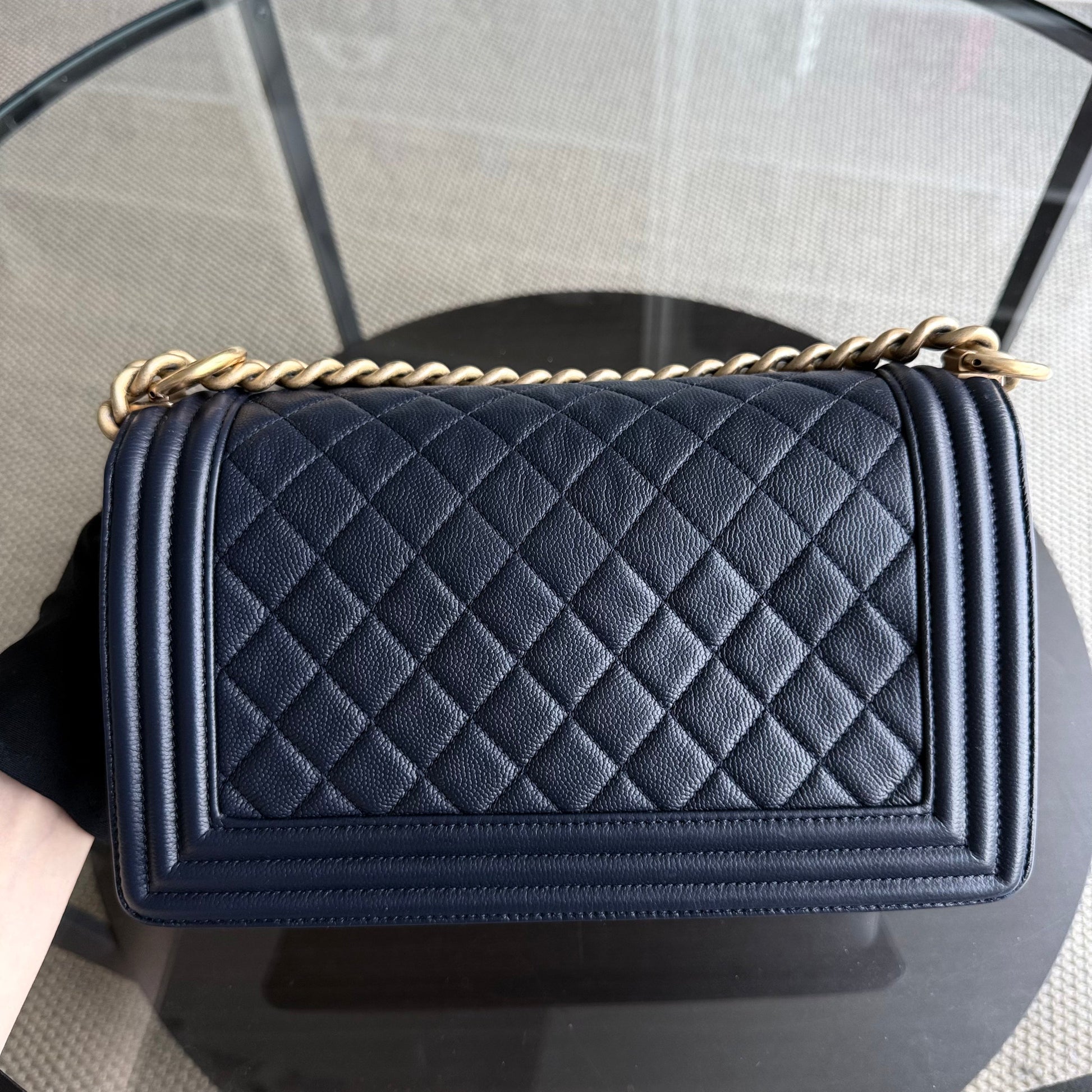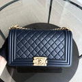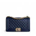 Chanel Boy Medium - Caviar 25CM Quilted Dark Navy Blue Gold Hardware Series 24