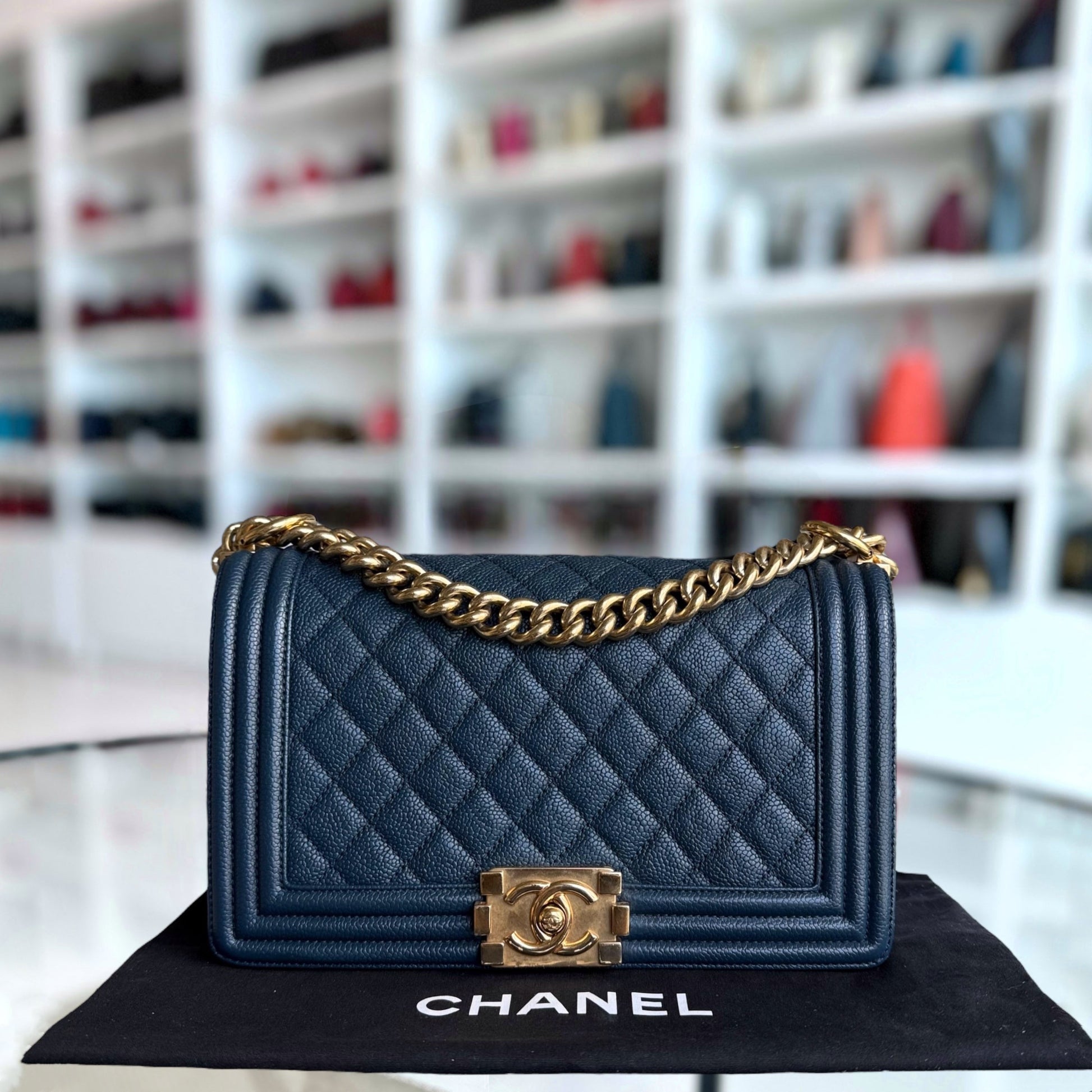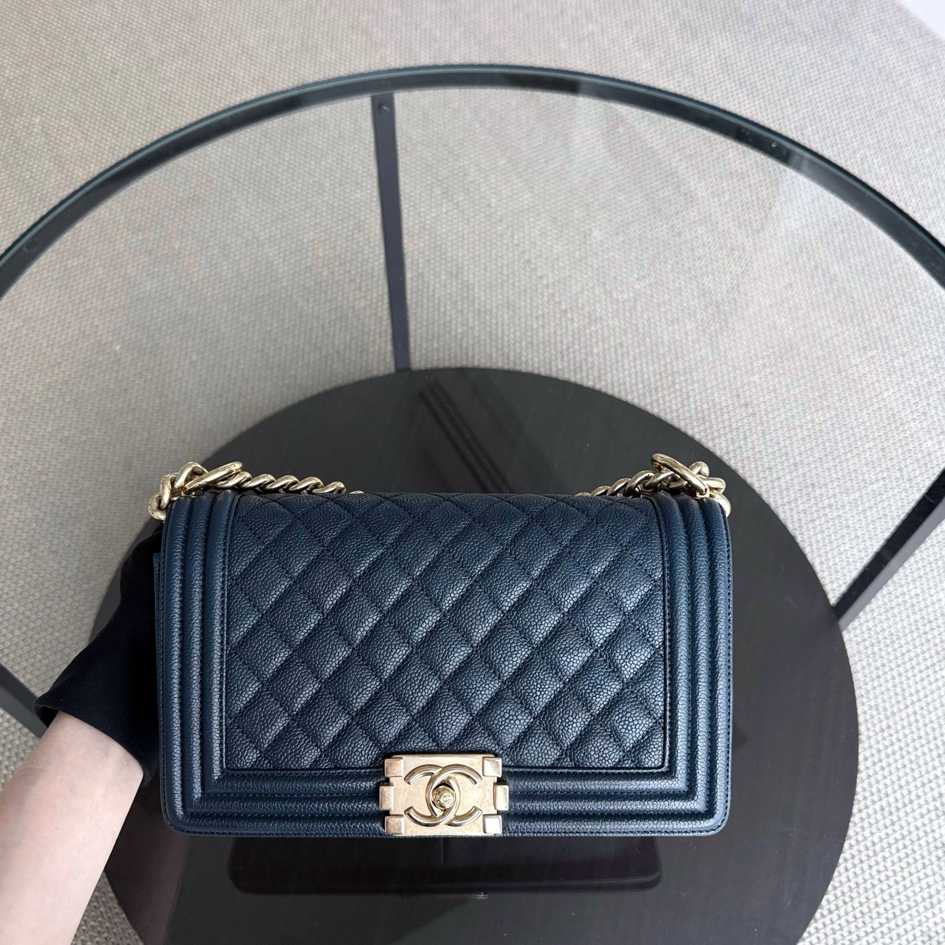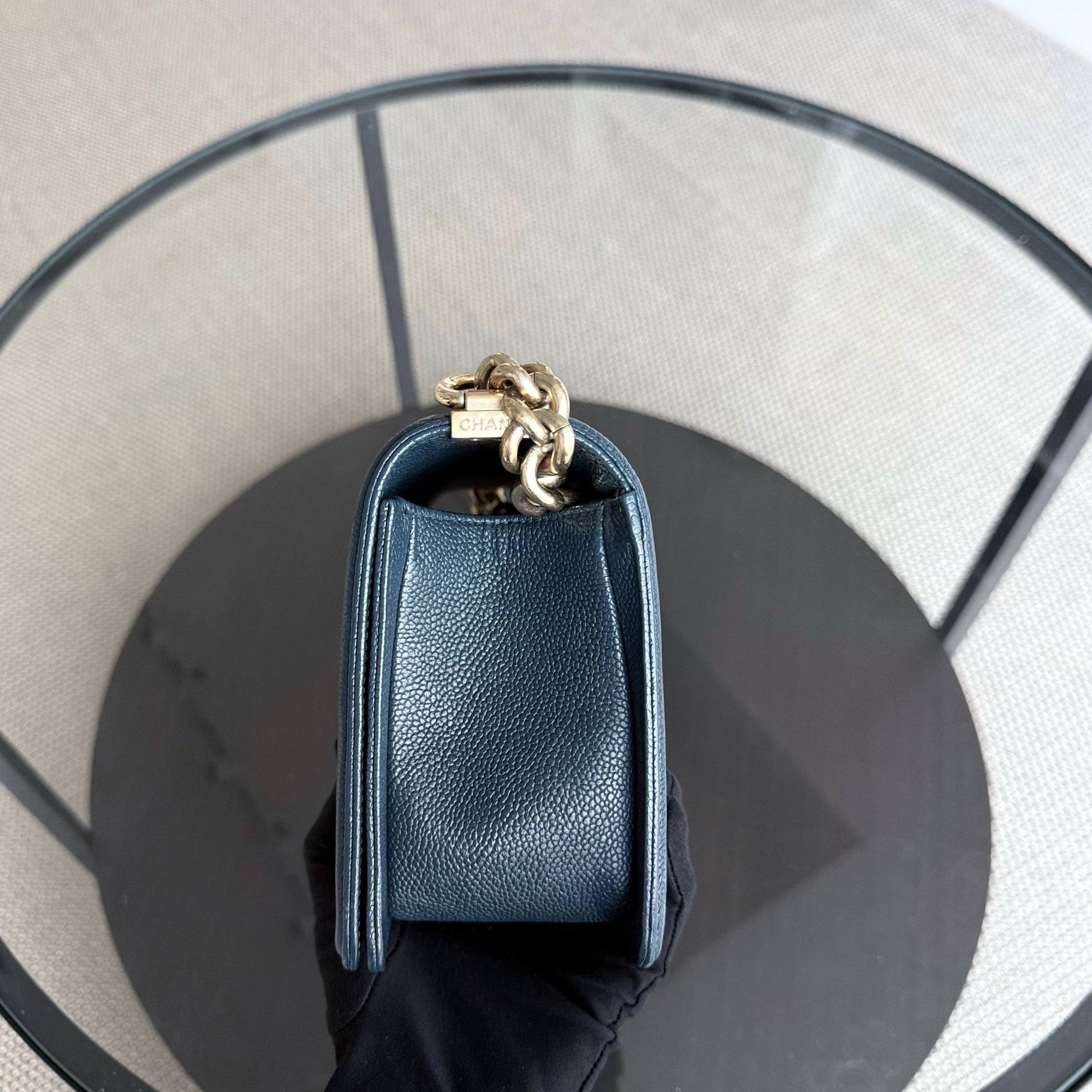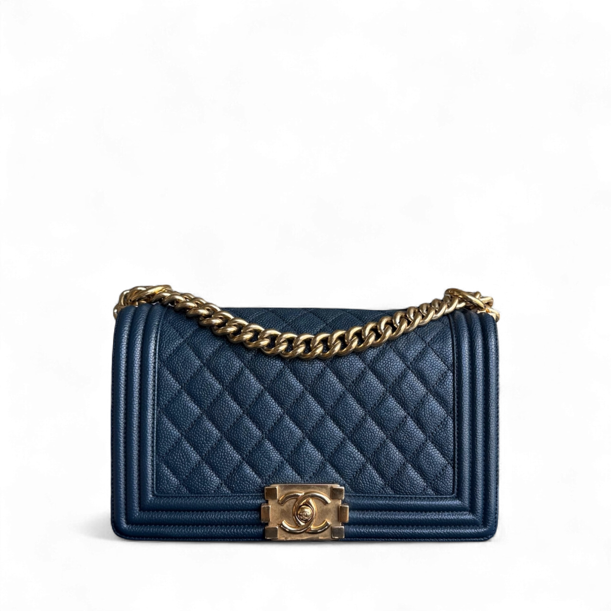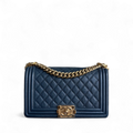 Chanel Boy Medium - Caviar 25CM Quilted Grained Calfskin Blue Gold Hardware Series 23