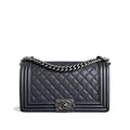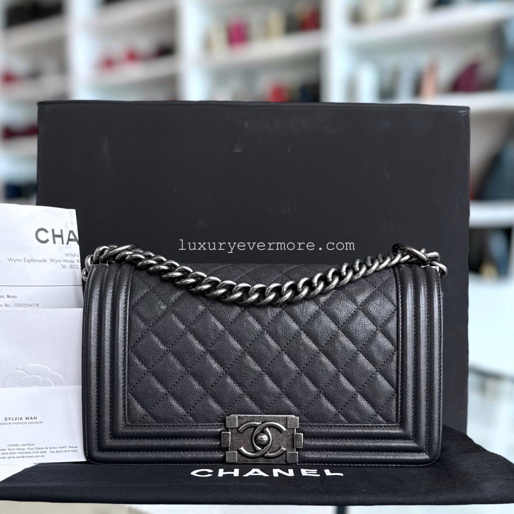 Chanel Boy Medium in stunning iridescent grey with caviar leather, a true masterpiece for the discerning collector. The quilted design paired with ruthenium silver hardware exudes timeless elegance.
