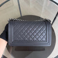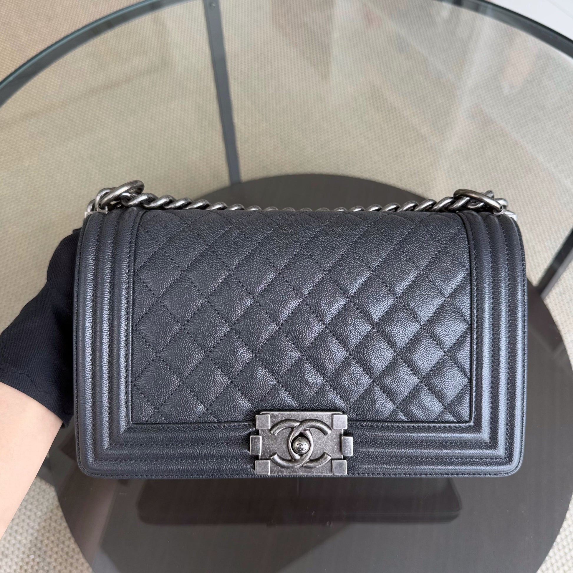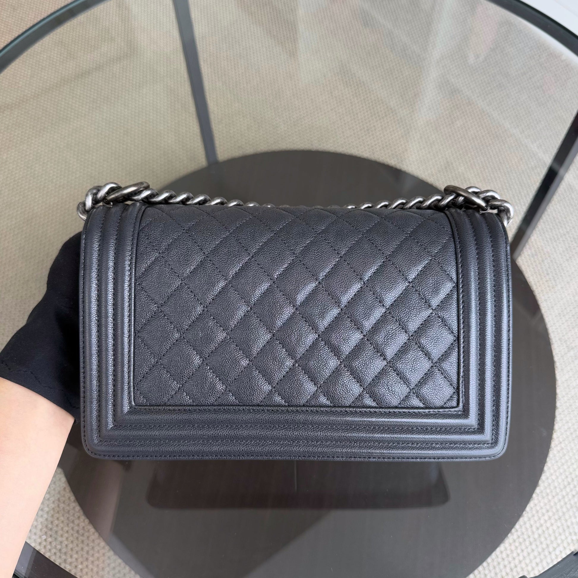 Chanel Boy Medium - Caviar 25CM Quilted Iridescent Grey Gray Ruthenium Silver Hardware Series 26