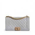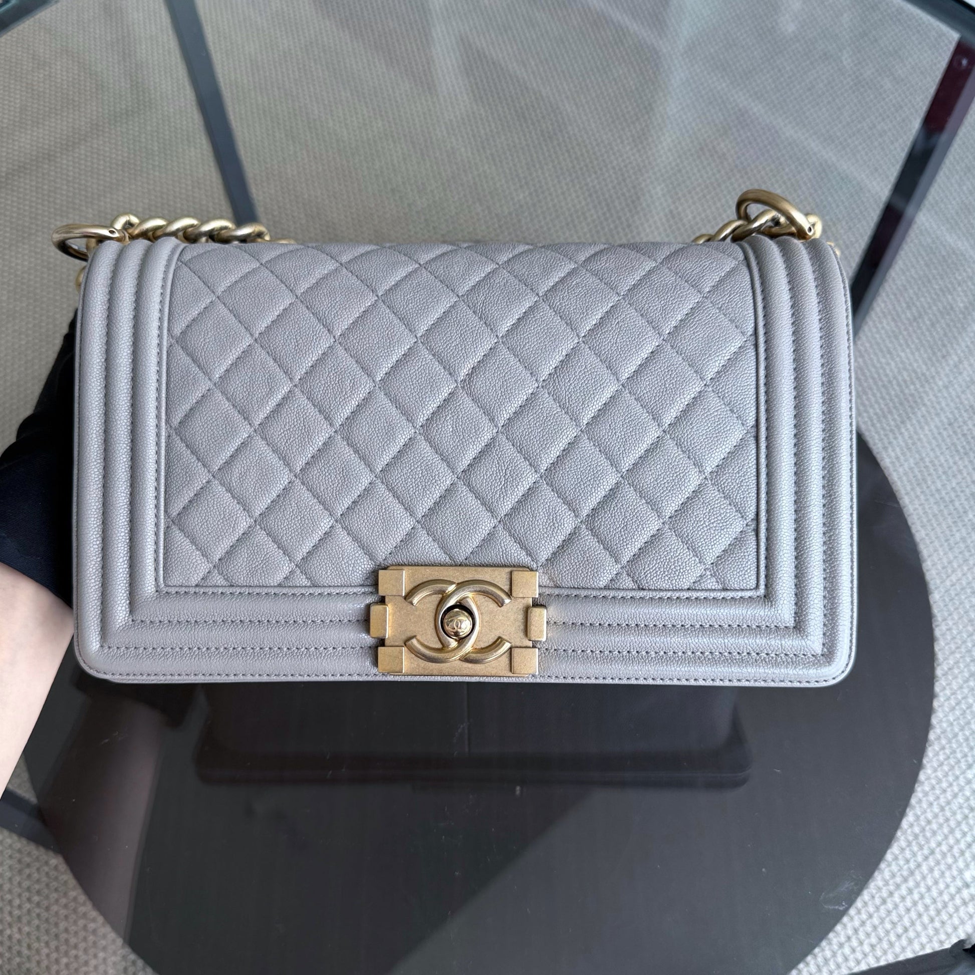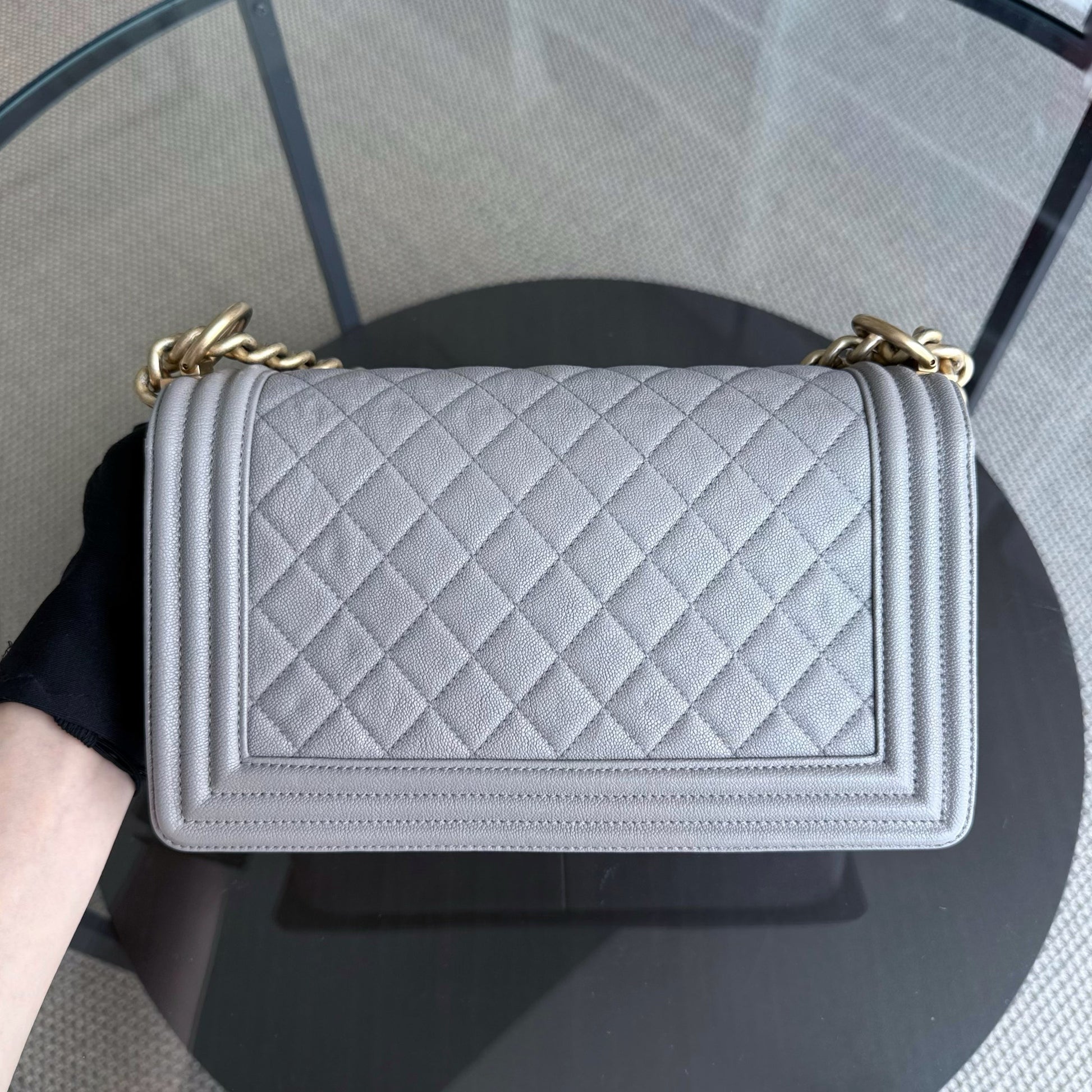 Chanel Boy Medium - Caviar 25CM Quilted Light Grey Gold Hardware
