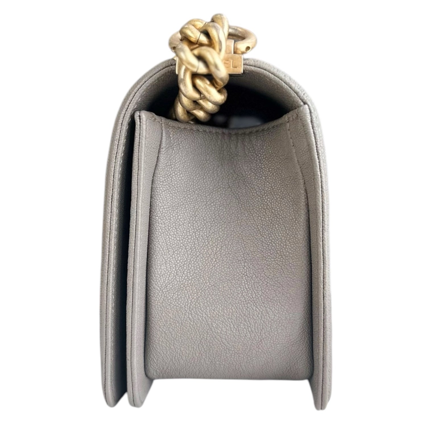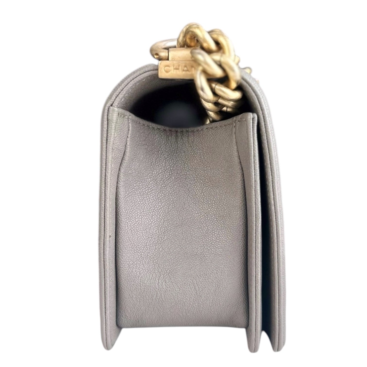 Chanel Boy Medium - Caviar 25CM Quilted Light Grey Gray Gold Hardware Series 26
