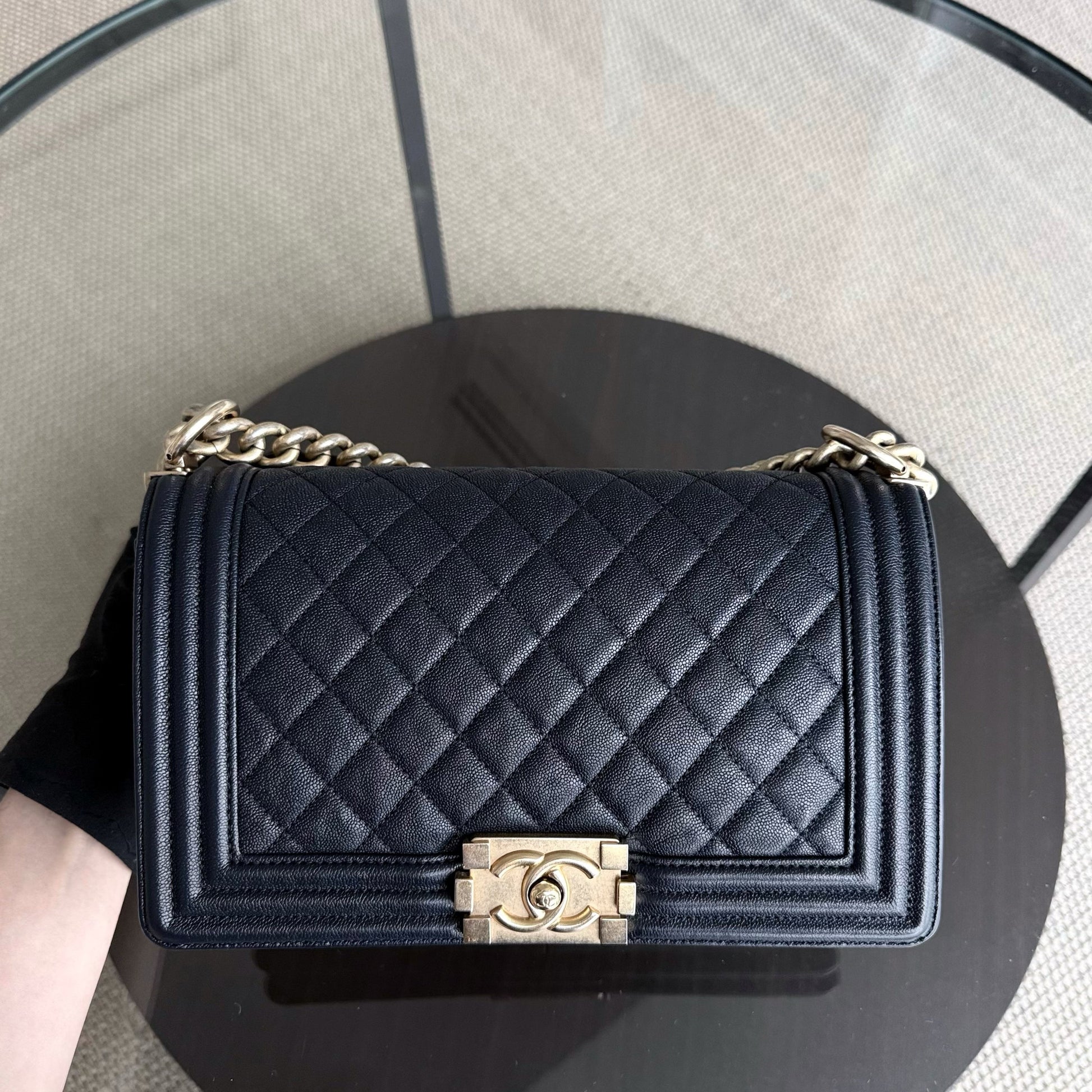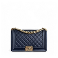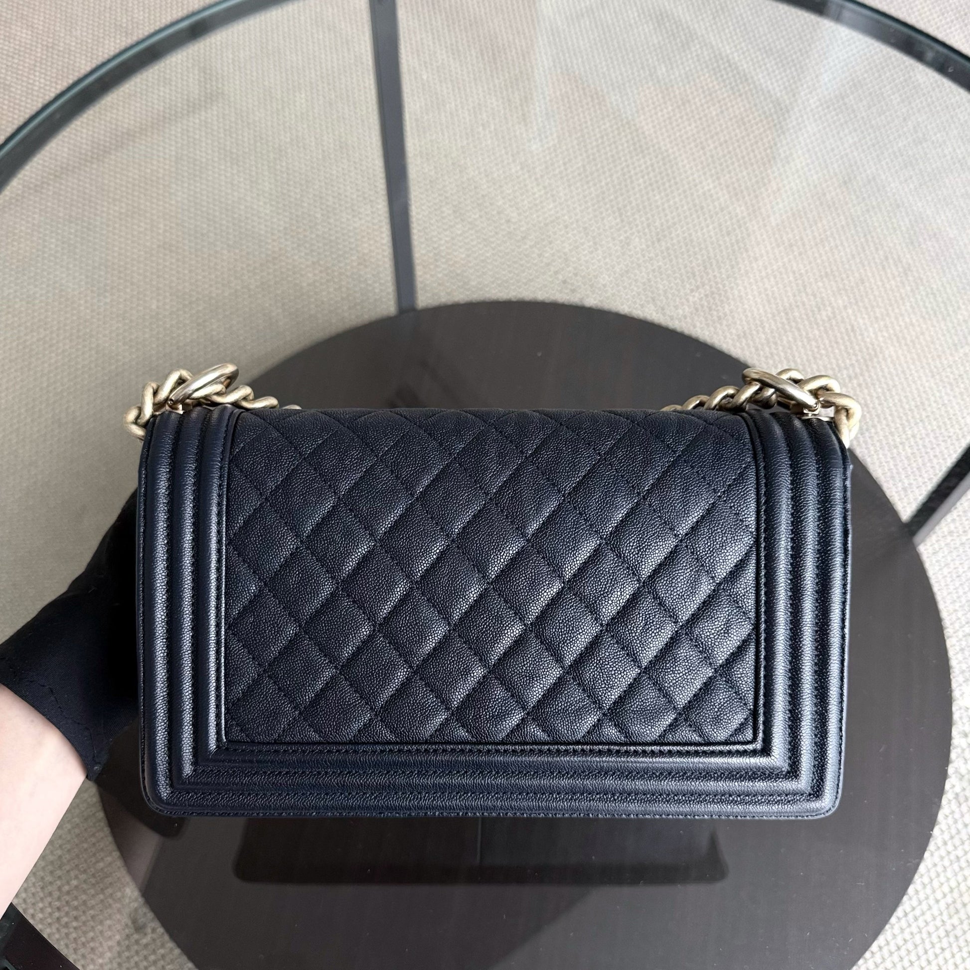 Chanel Boy Medium - Caviar 25CM Quilted Midnight Dark Blue Gold Hardware Series 27