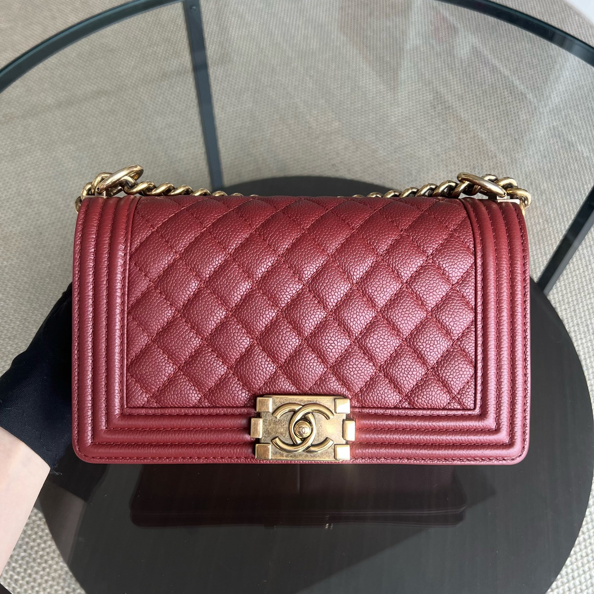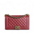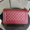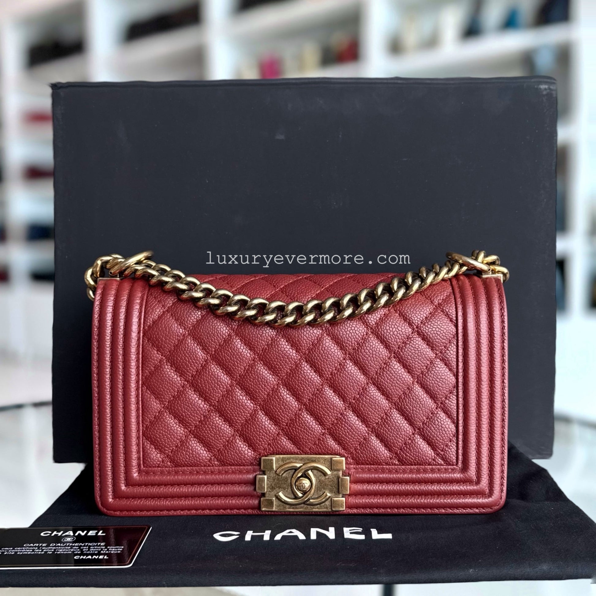 Chanel Boy Medium - Caviar 25CM Quilted Red Ruthenium Gold Hardware Series 20