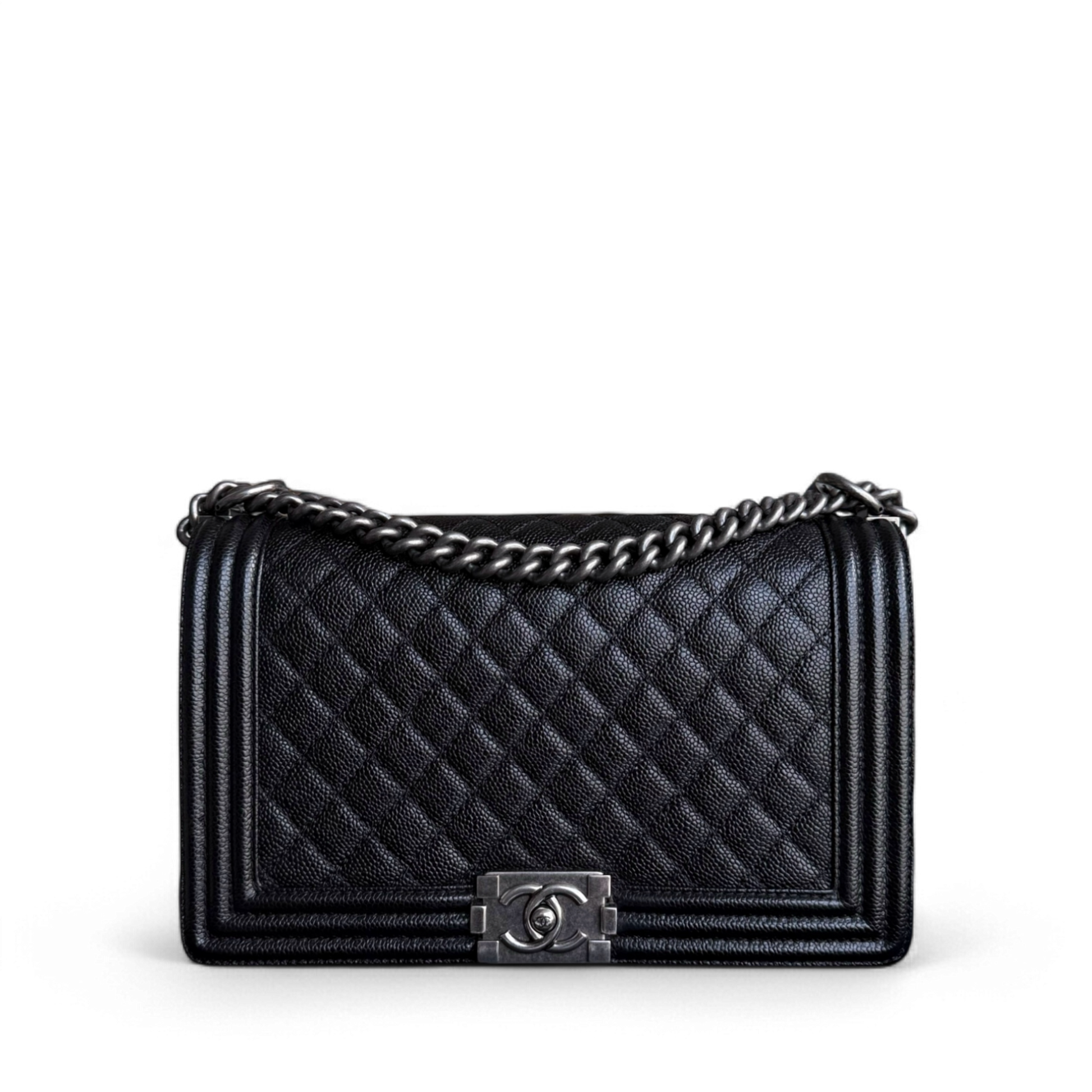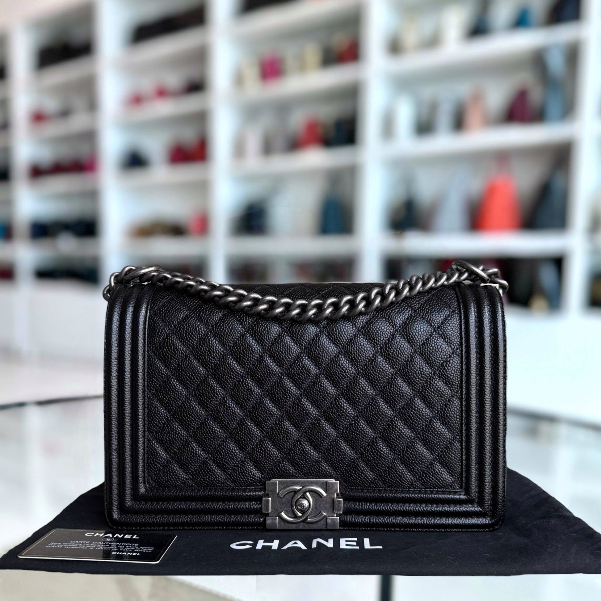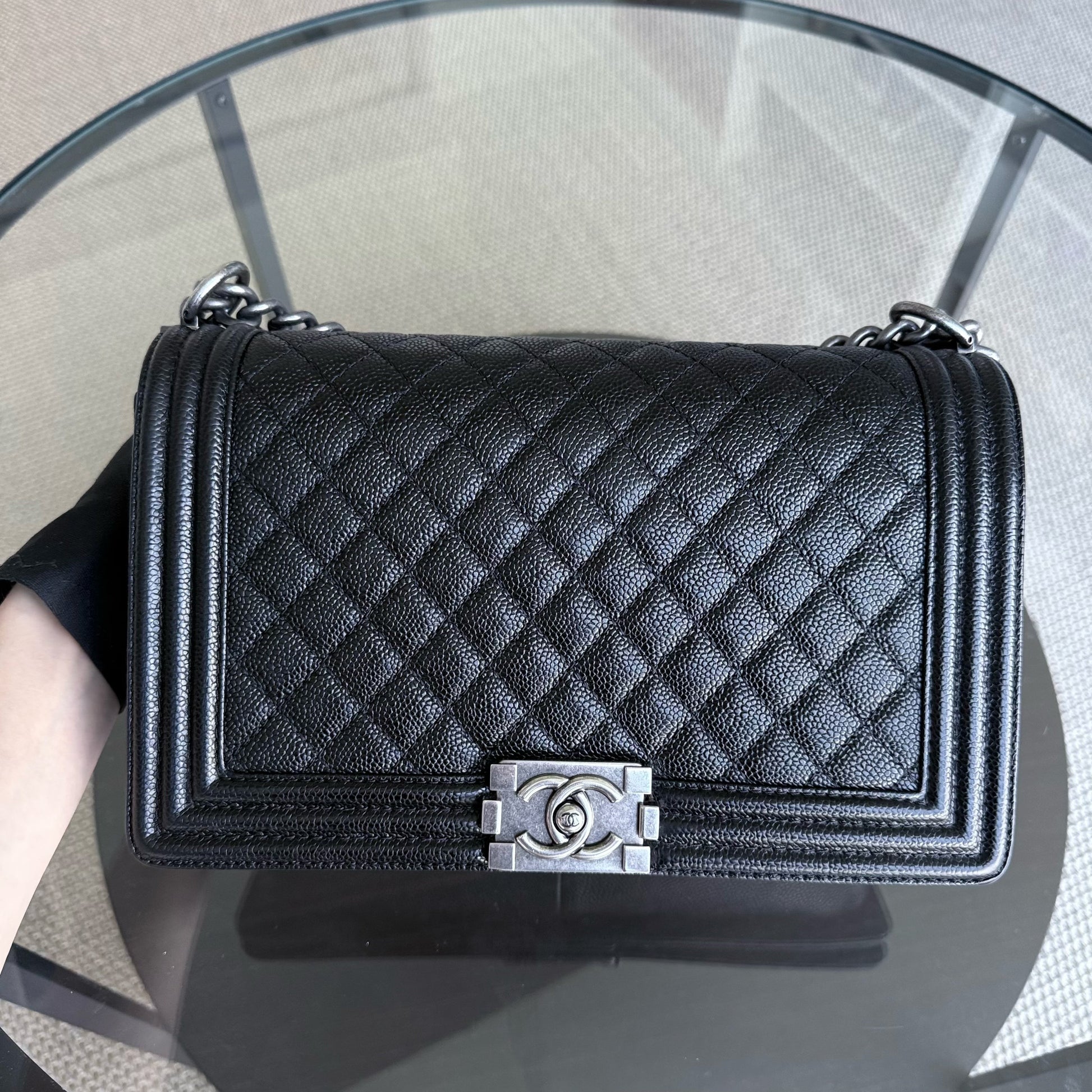 Chanel Boy Medium - Caviar 28CM New Medium Quilted Black Ruthenium Silver Hardware Series 19