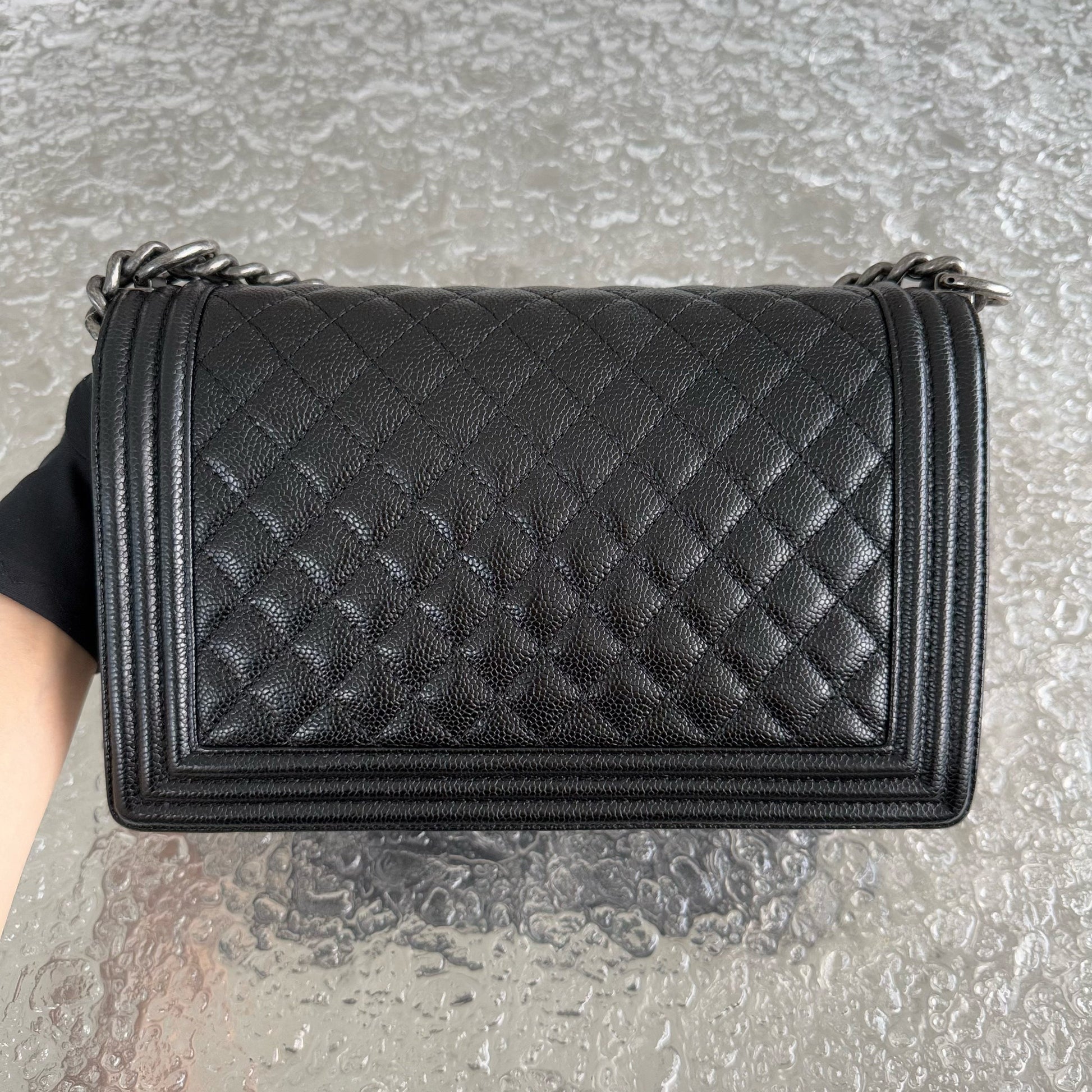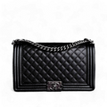 Chanel Boy Medium - Caviar 28CM Quilted Black Ruthenium Silver Hardware Series 20