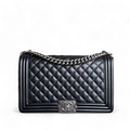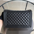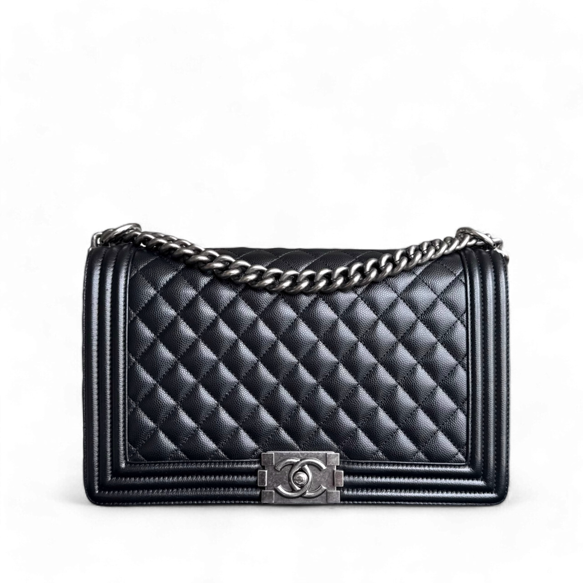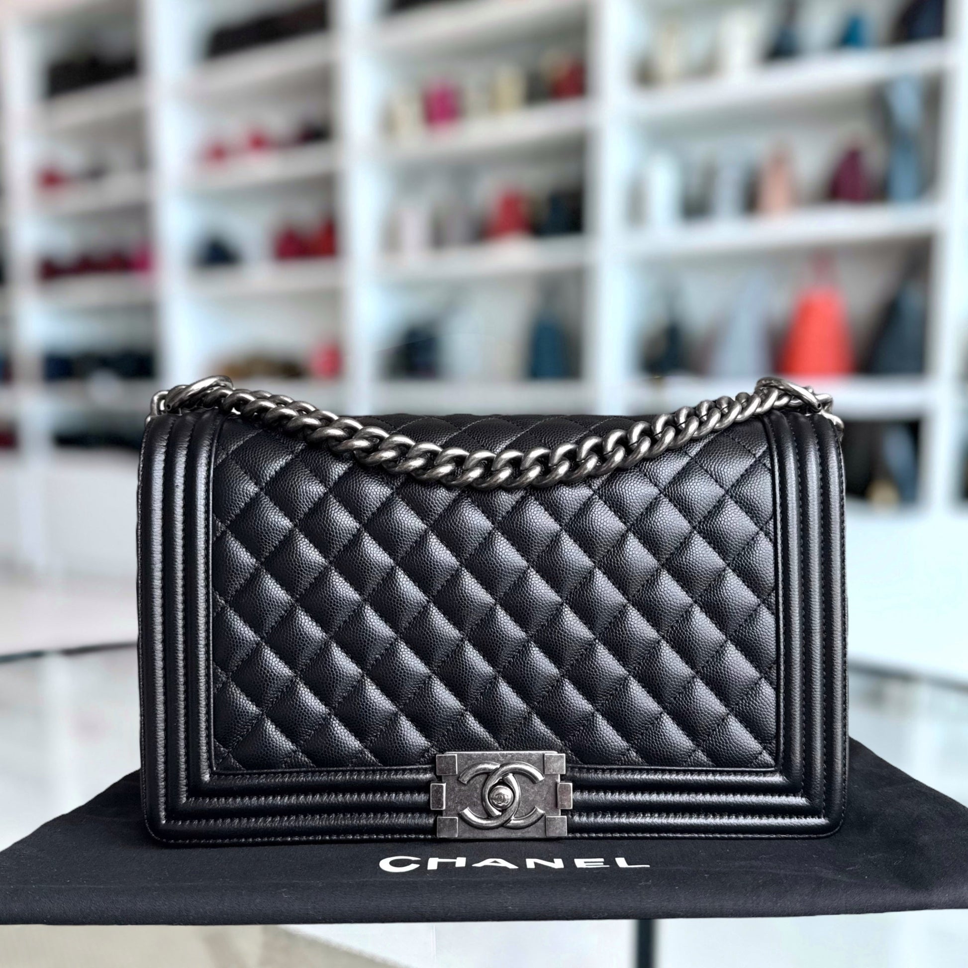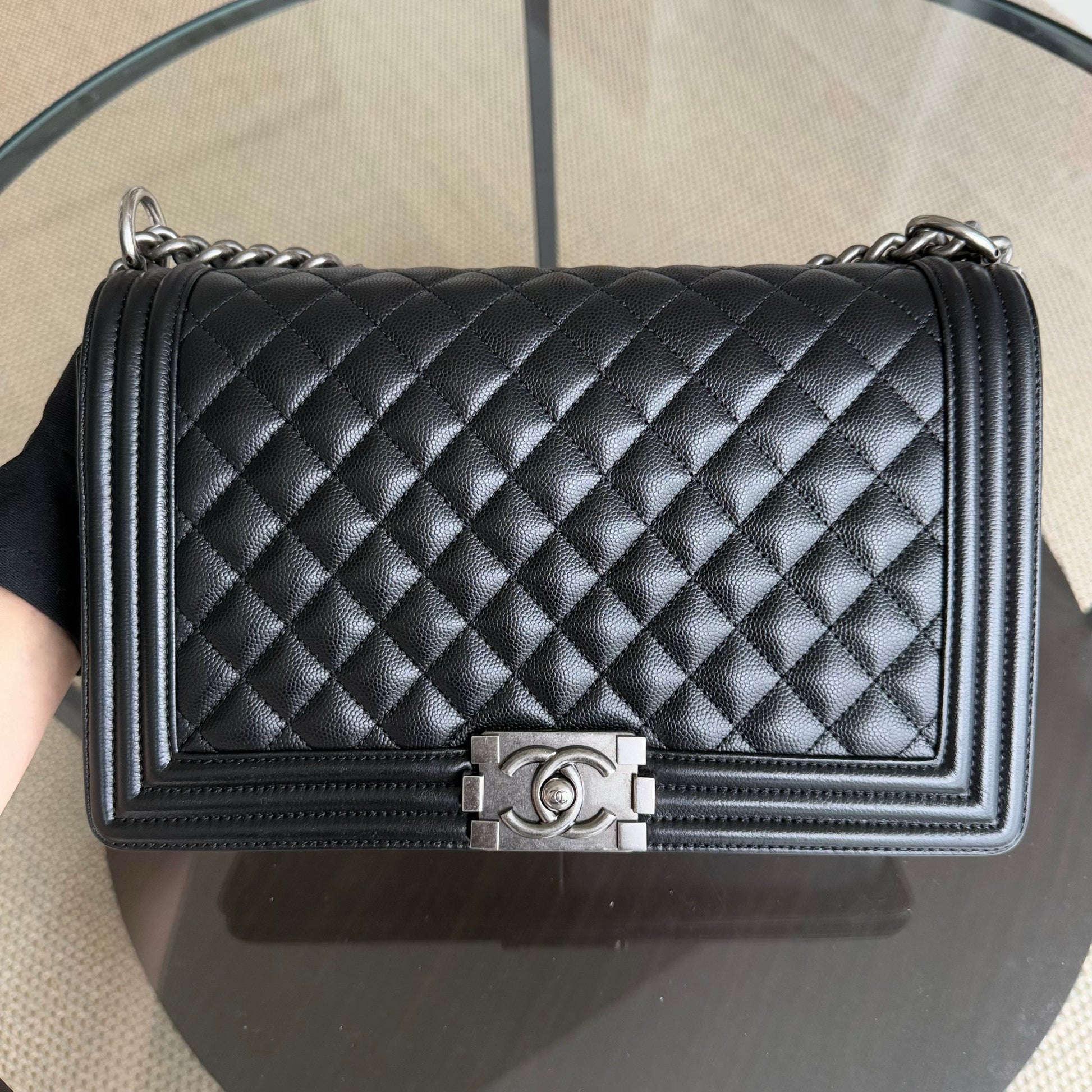 Chanel Boy Medium - Caviar 28CM Quilted Black Ruthenium Silver Hardware Series 28