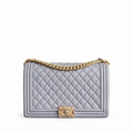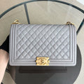 Chanel Boy Medium - Caviar 28CM Quilted Grey Gray Gold Hardware Series 26