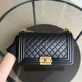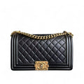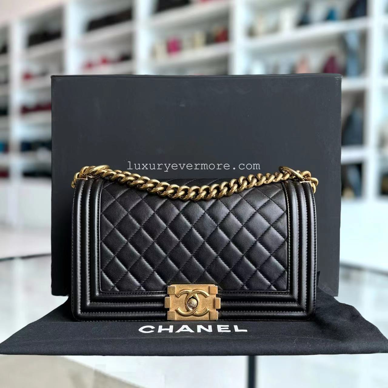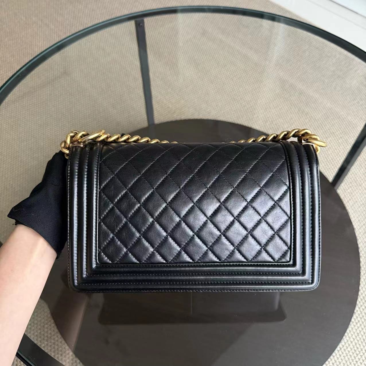 Chanel Boy Medium - Lambskin 25CM Quilted Black Gold Hardware Series 19