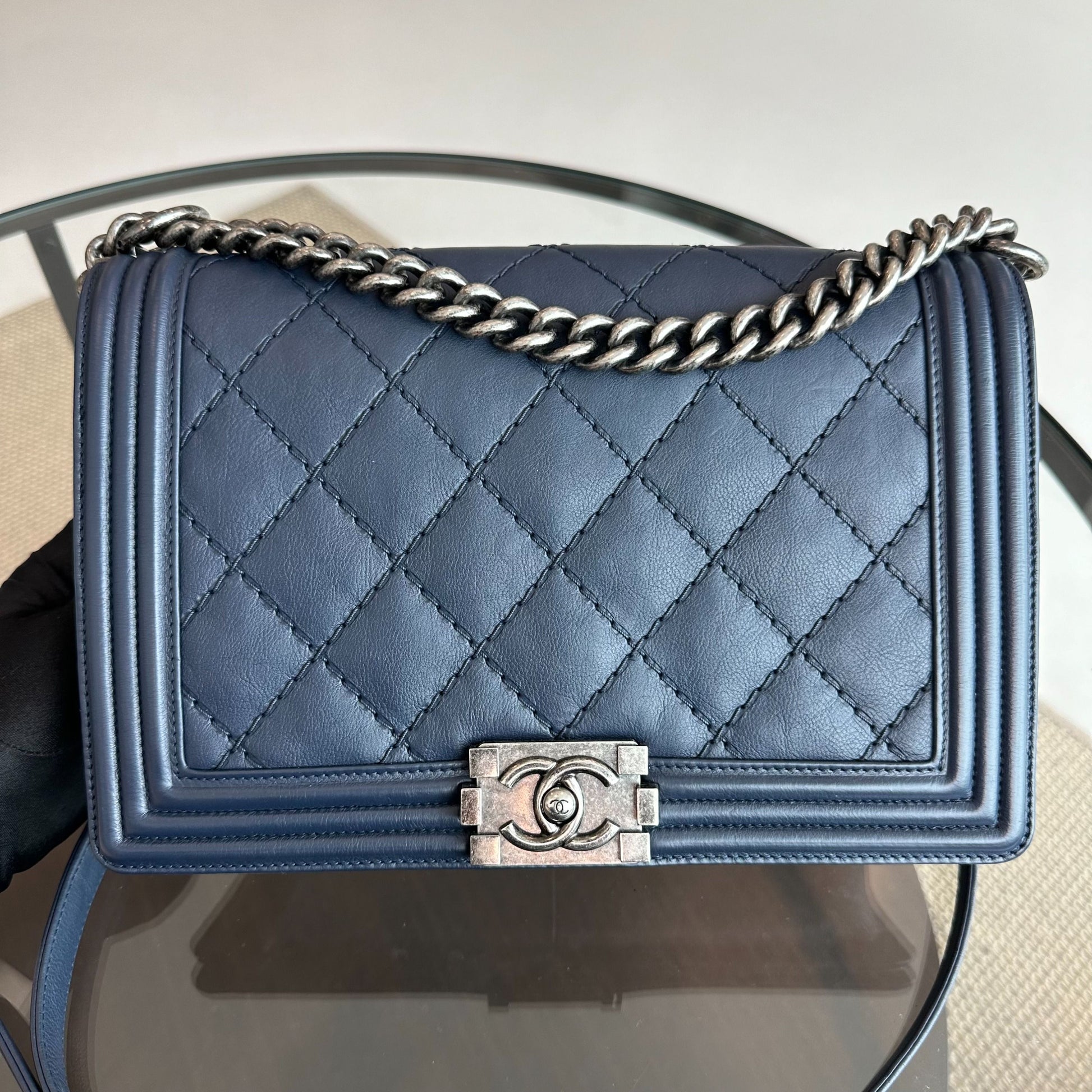 Boy New Medium 28CM Calfskin Leboy Dark Blue No 18