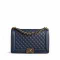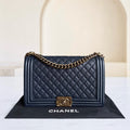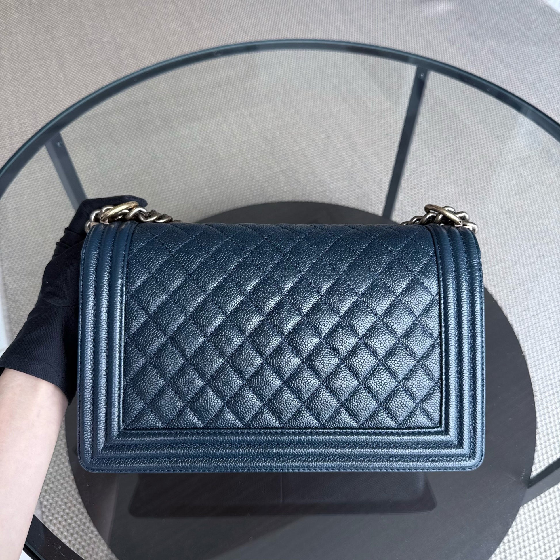 Chanel Boy New Medium - 28CM Caviar Quilted Grained Calfskin Dark Navy Blue Ruthenium Gold Hardware