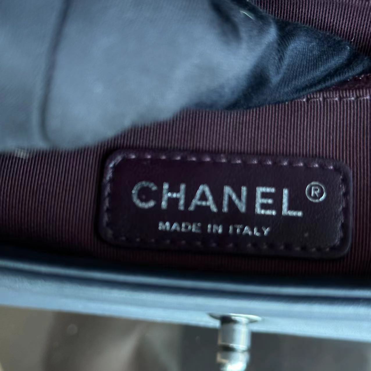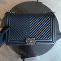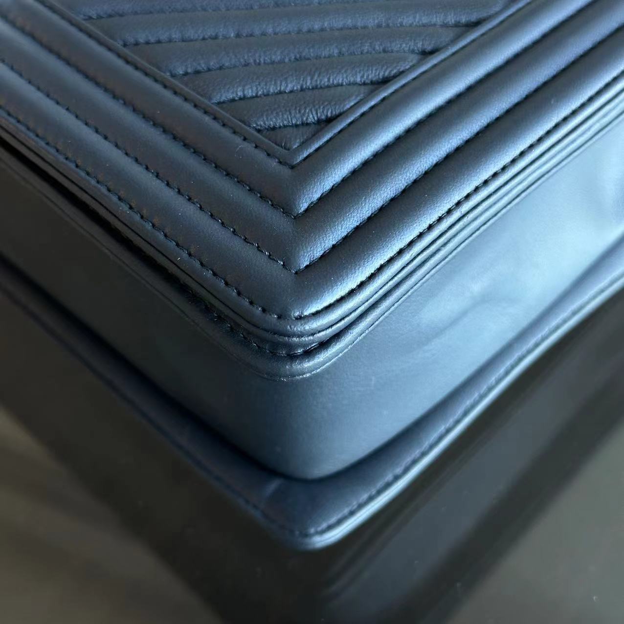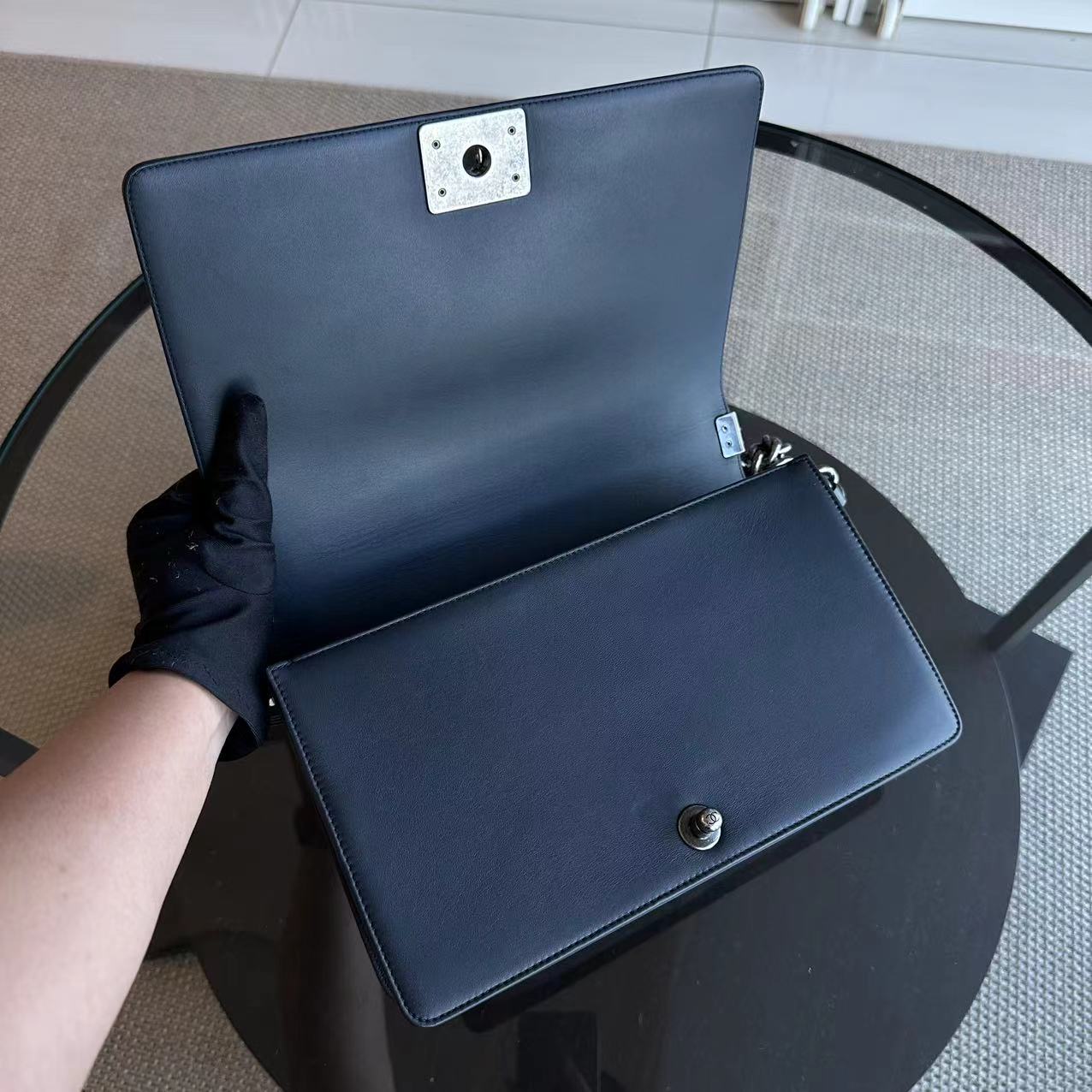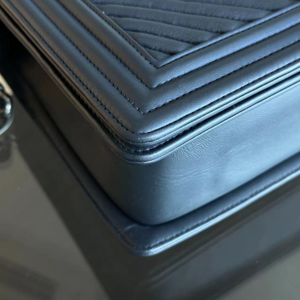 Boy New Medium 28CM Chevron Lambskin Dark Blue Leboy RSHW No 20