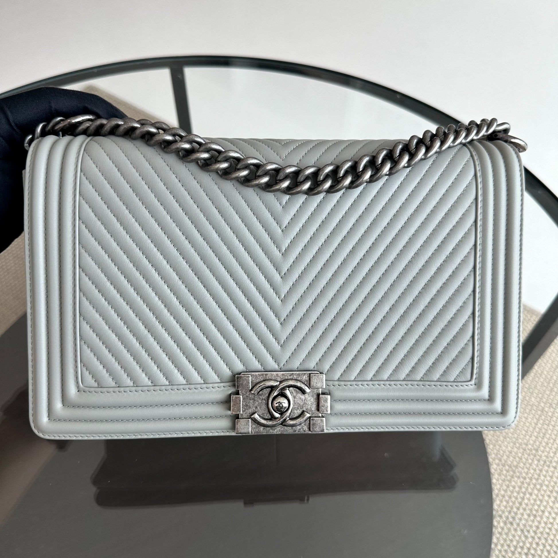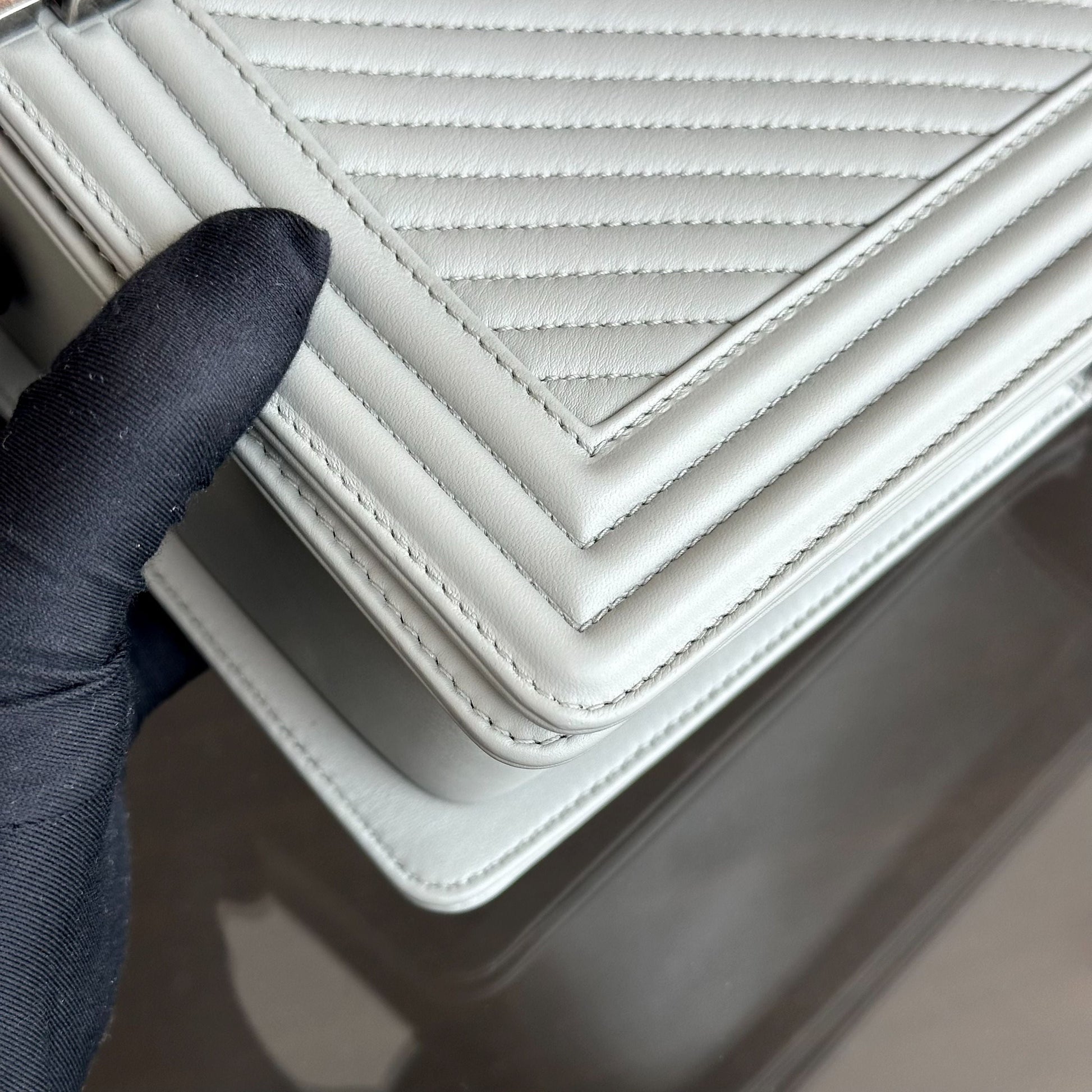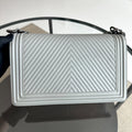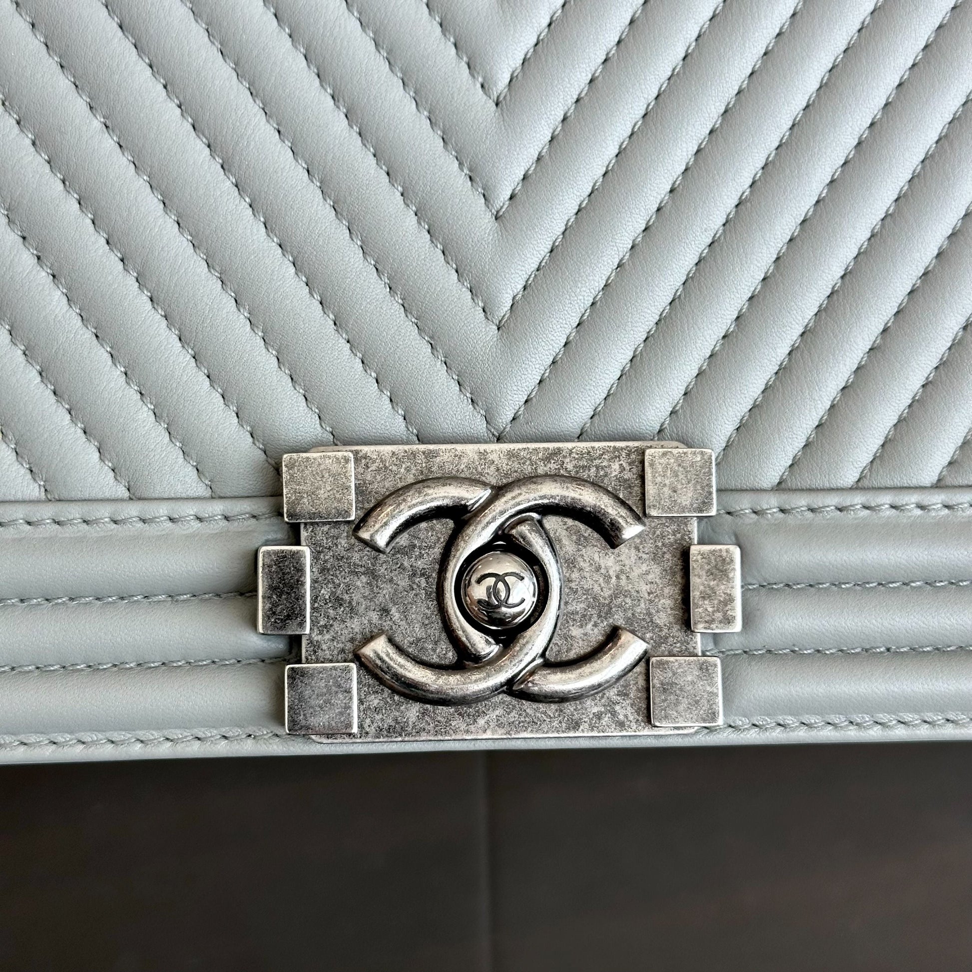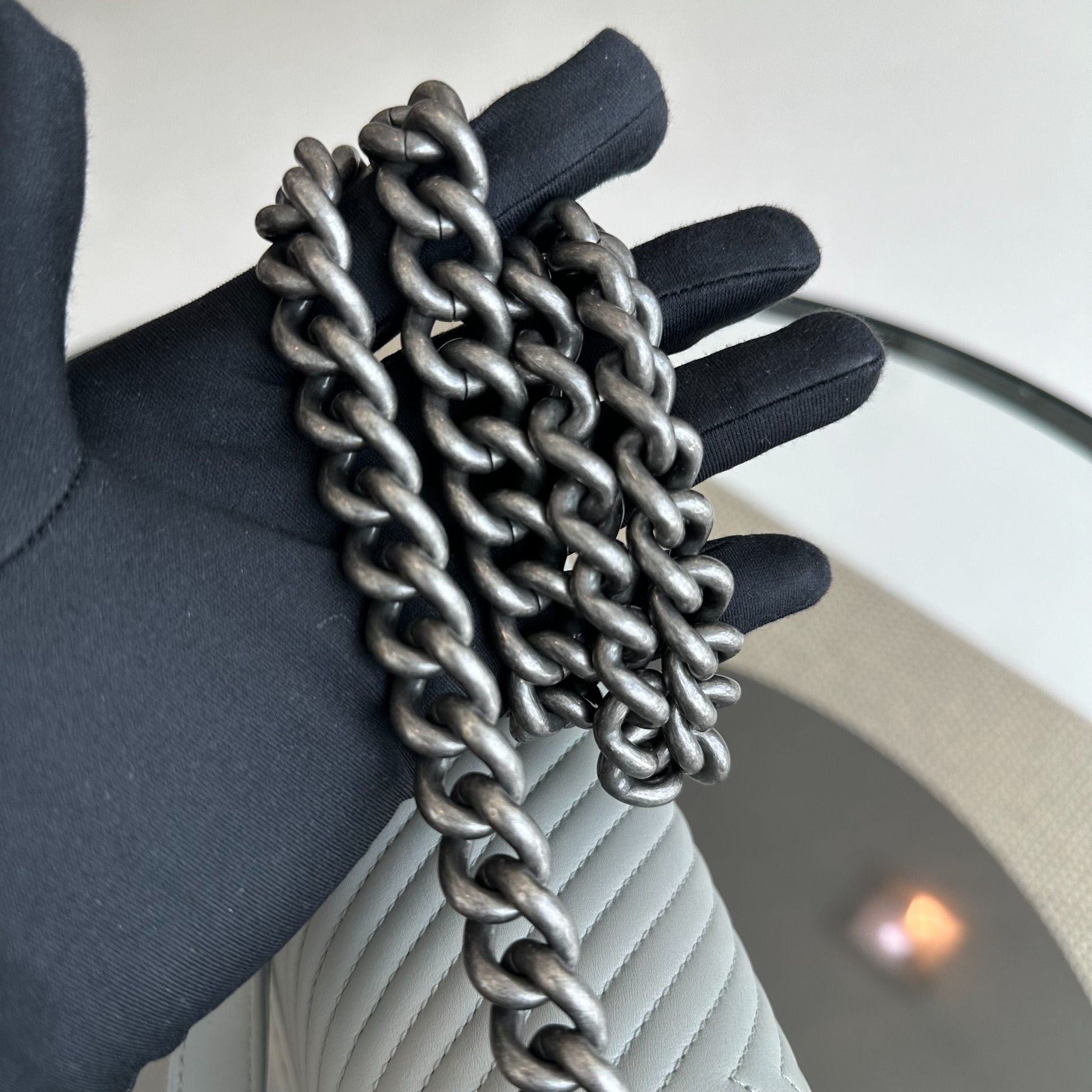 Boy New Medium 28CM Chevron Smooth Calfskin Gray Leboy RSHW No 20