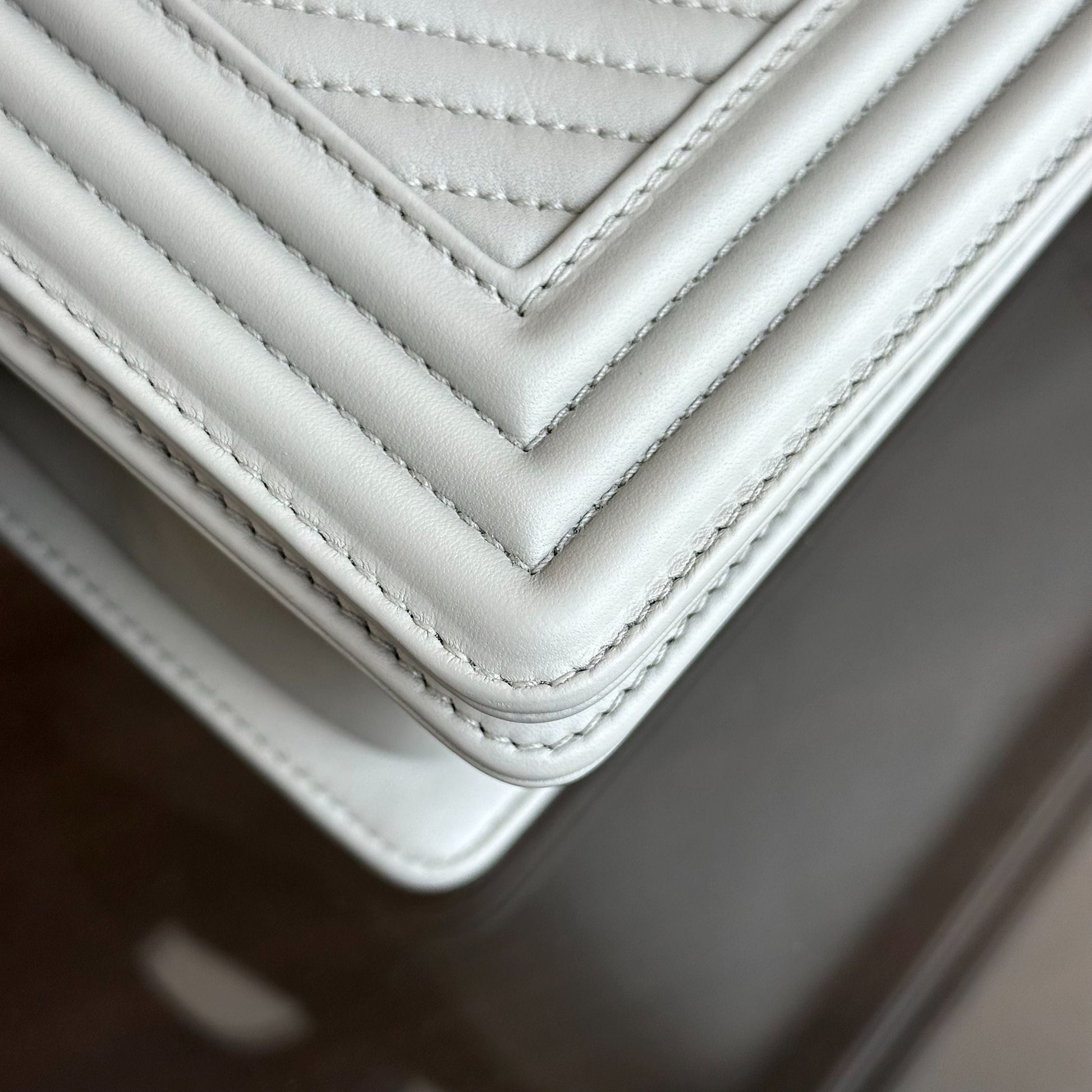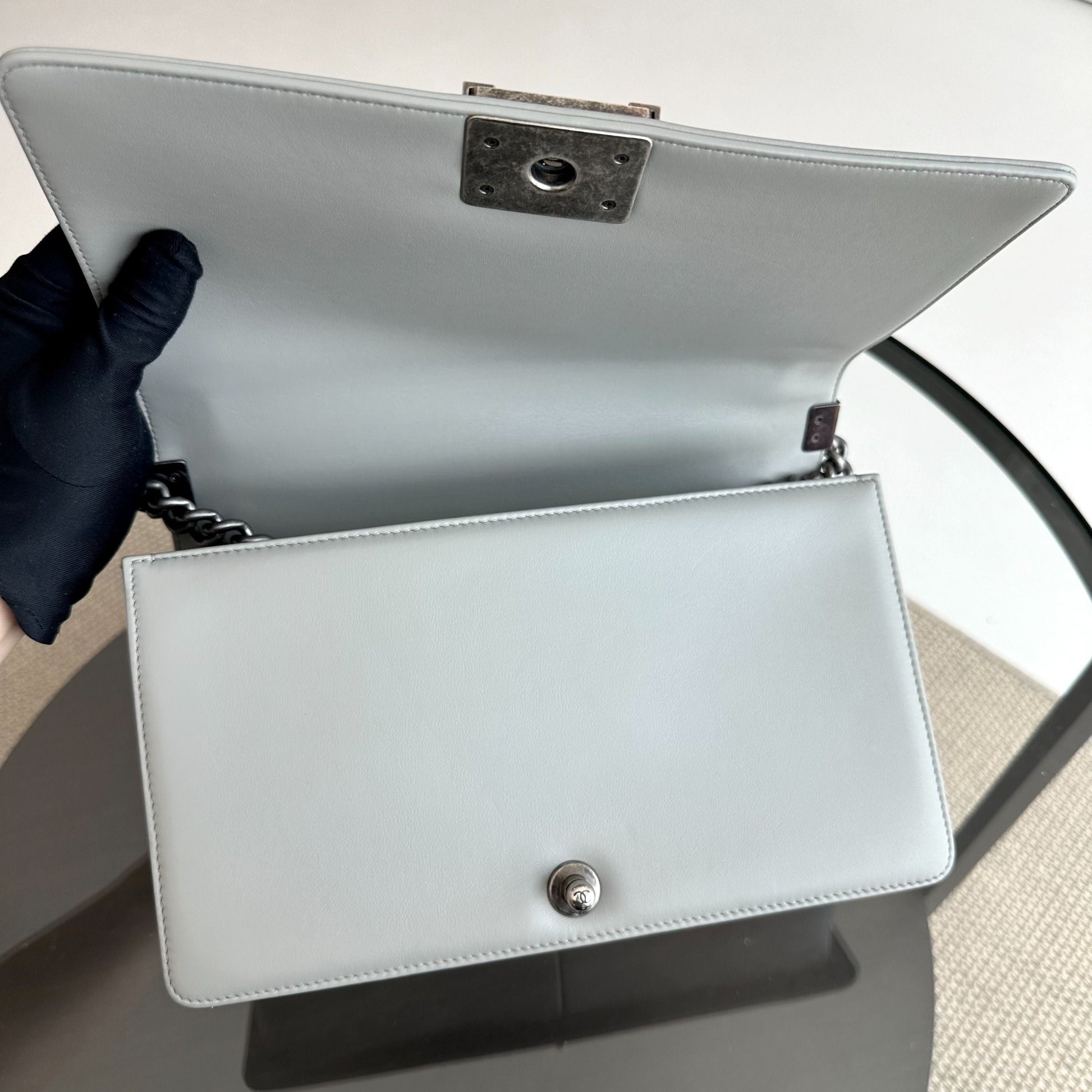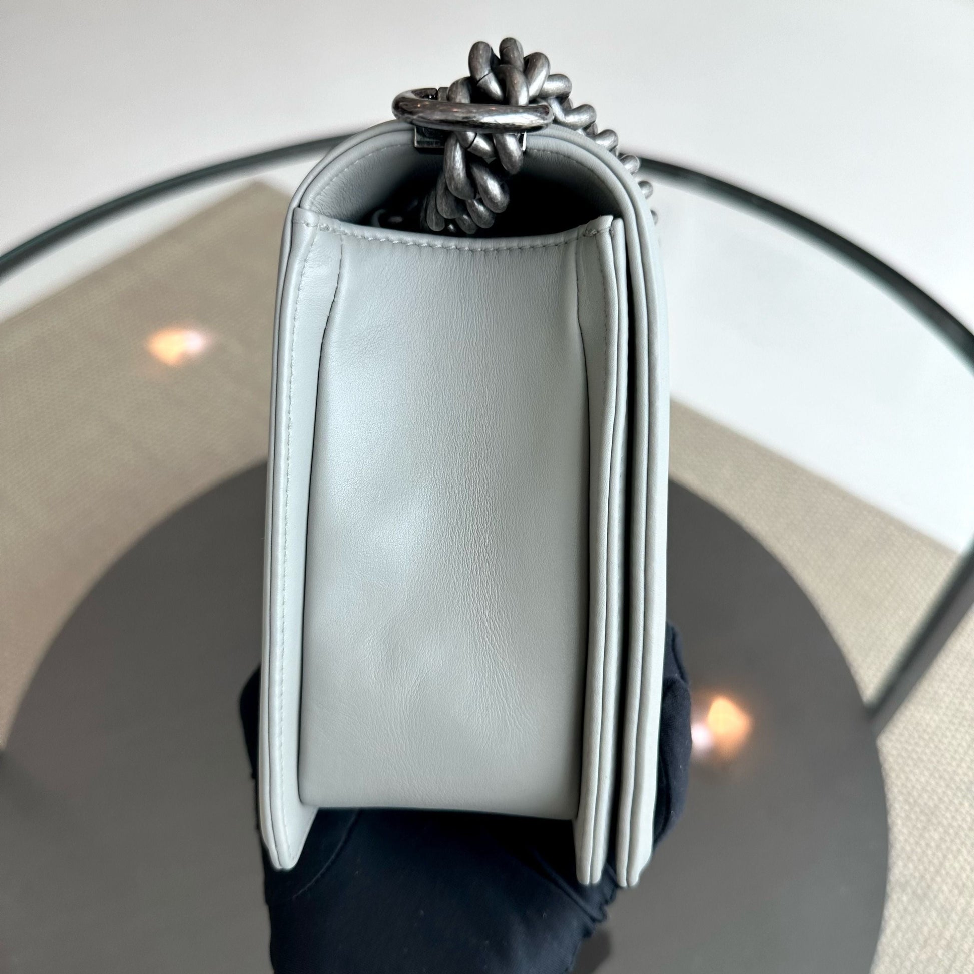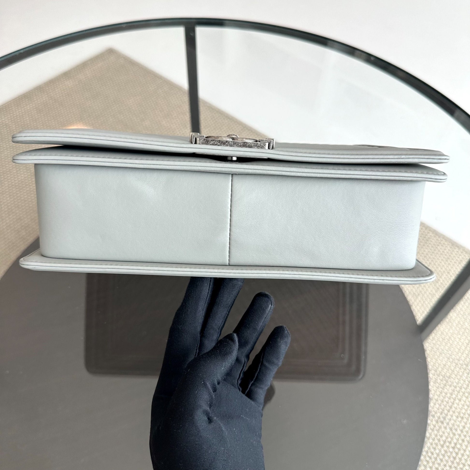 Boy New Medium 28CM Chevron Smooth Calfskin Gray Leboy RSHW No 20