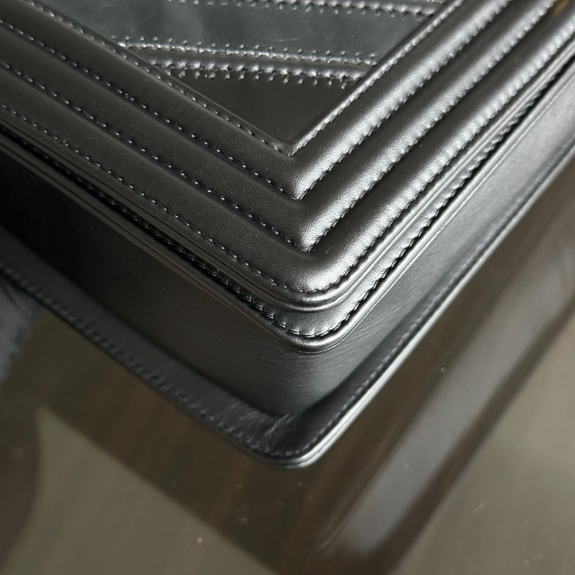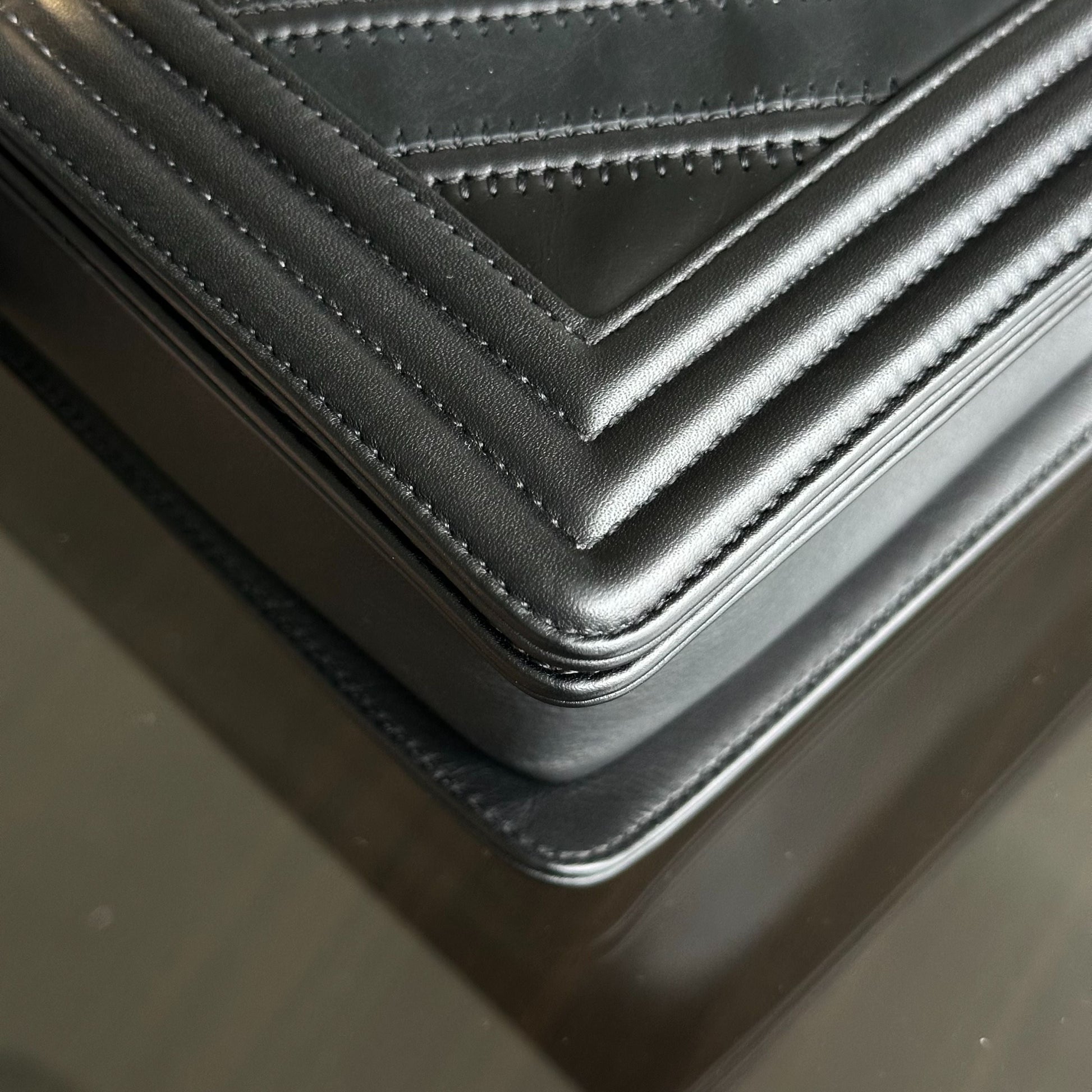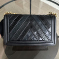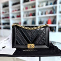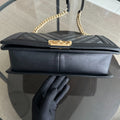 Boy New Medium 28CM Chevron Tri-skin Calfskin Black GHW No 22