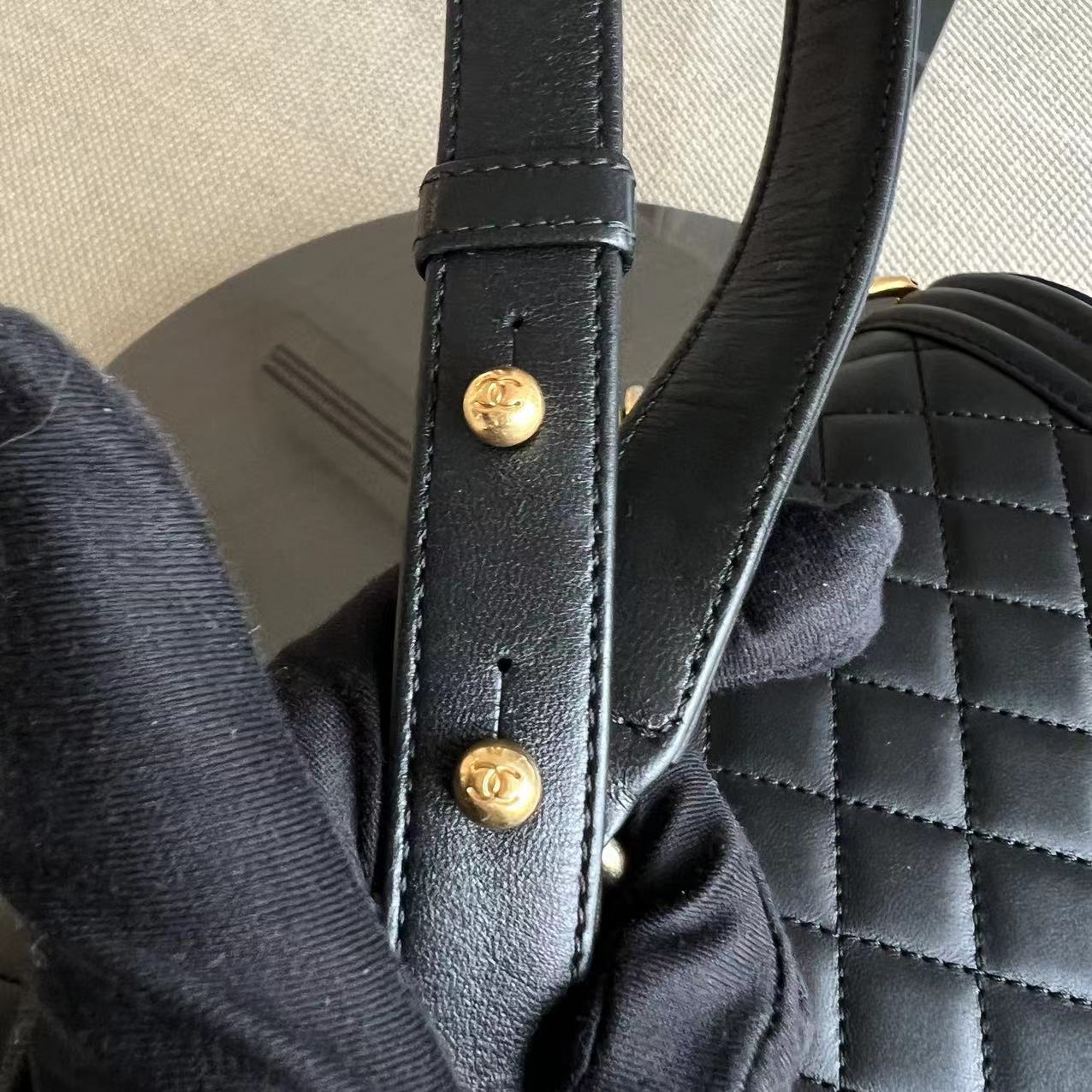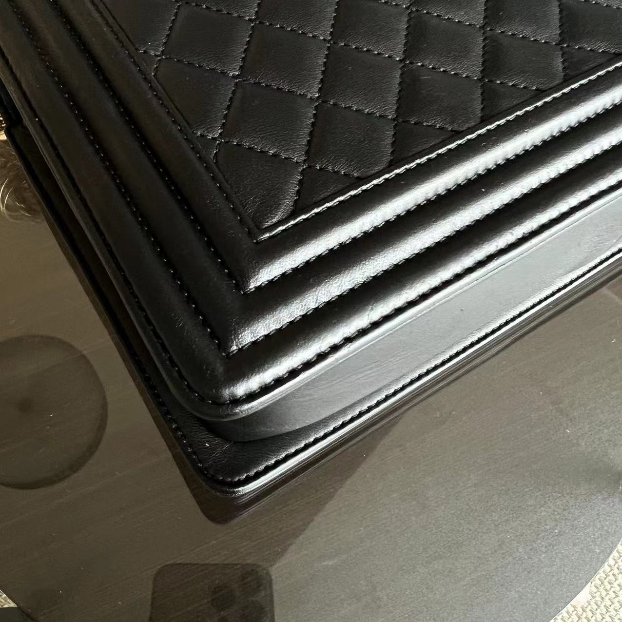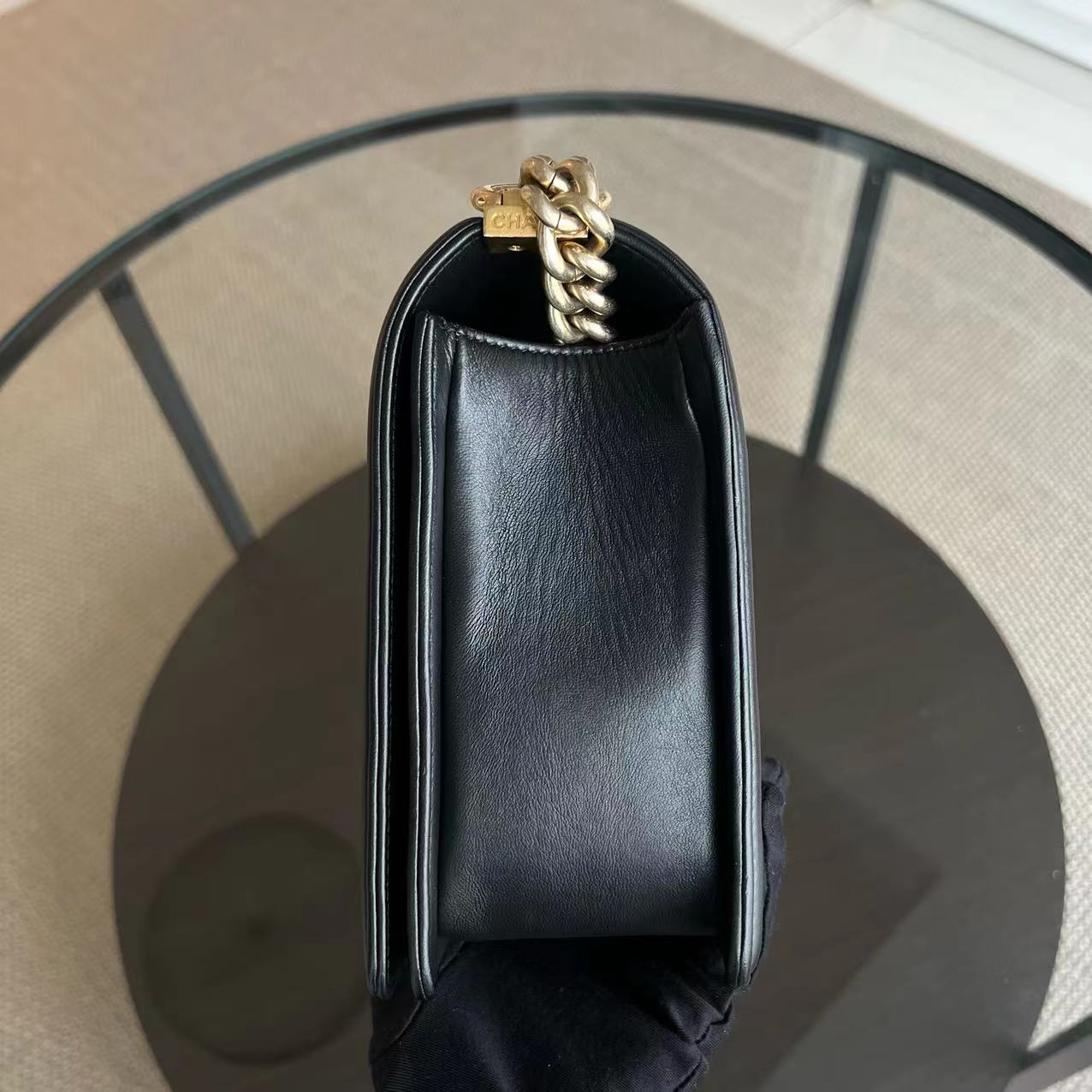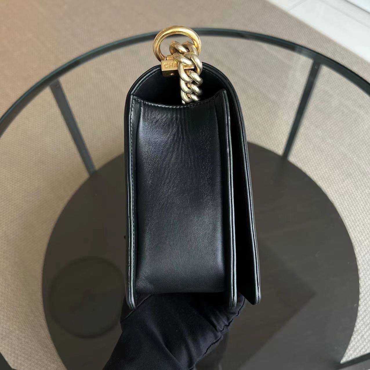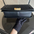 Boy New Medium 28CM Quilted Lambskin Black Leboy Golden Hardware Series 23