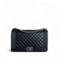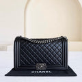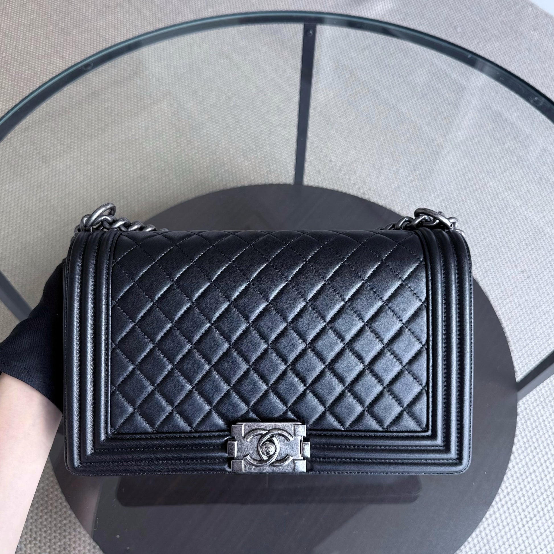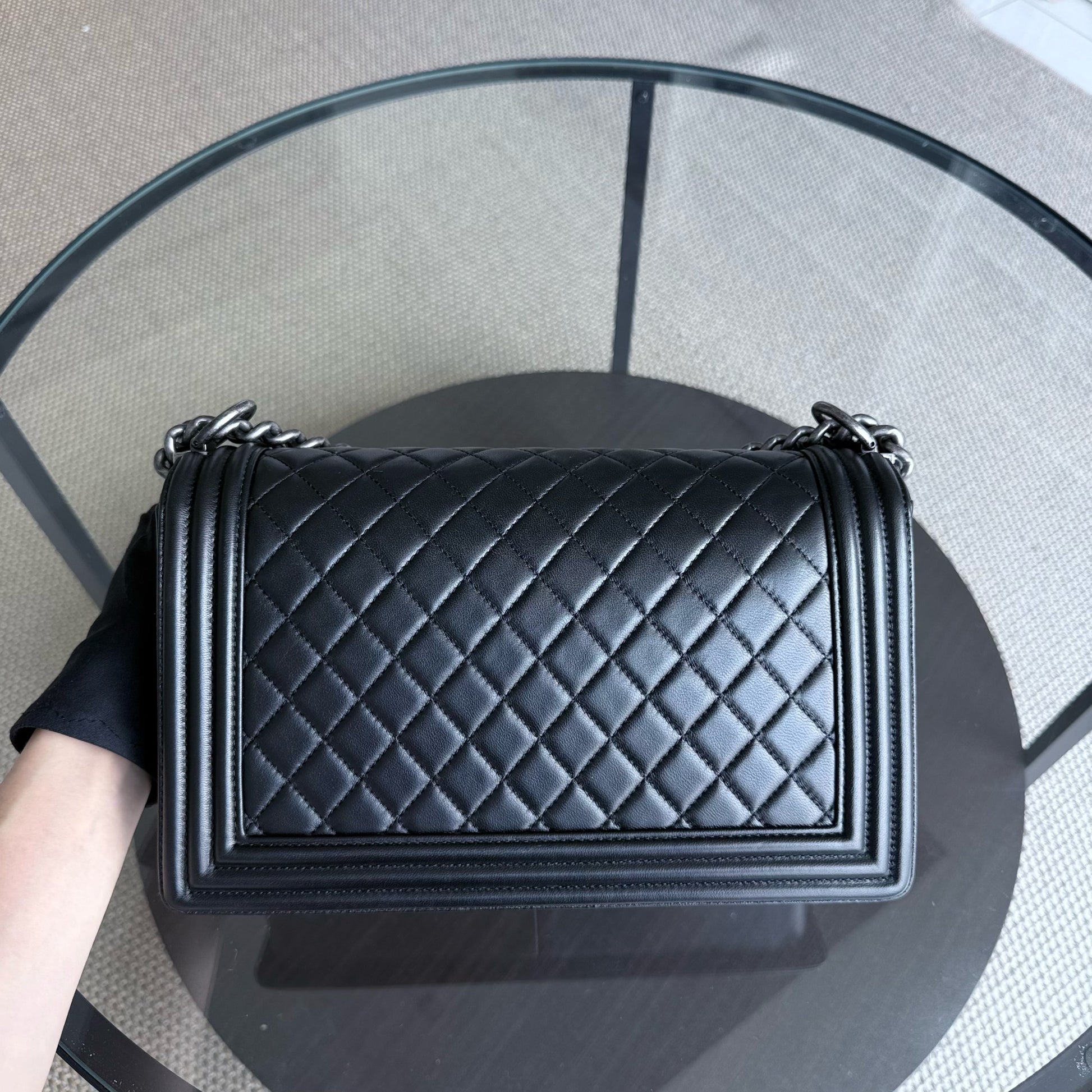 Chanel Boy New Medium - 28CM Quilted Lambskin Black Ruthenium Silver Hardware Series 21