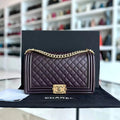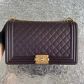 Boy New Medium 28CM Quilted Lambskin Dark Purple Burgundy Golden Hardware Series 23