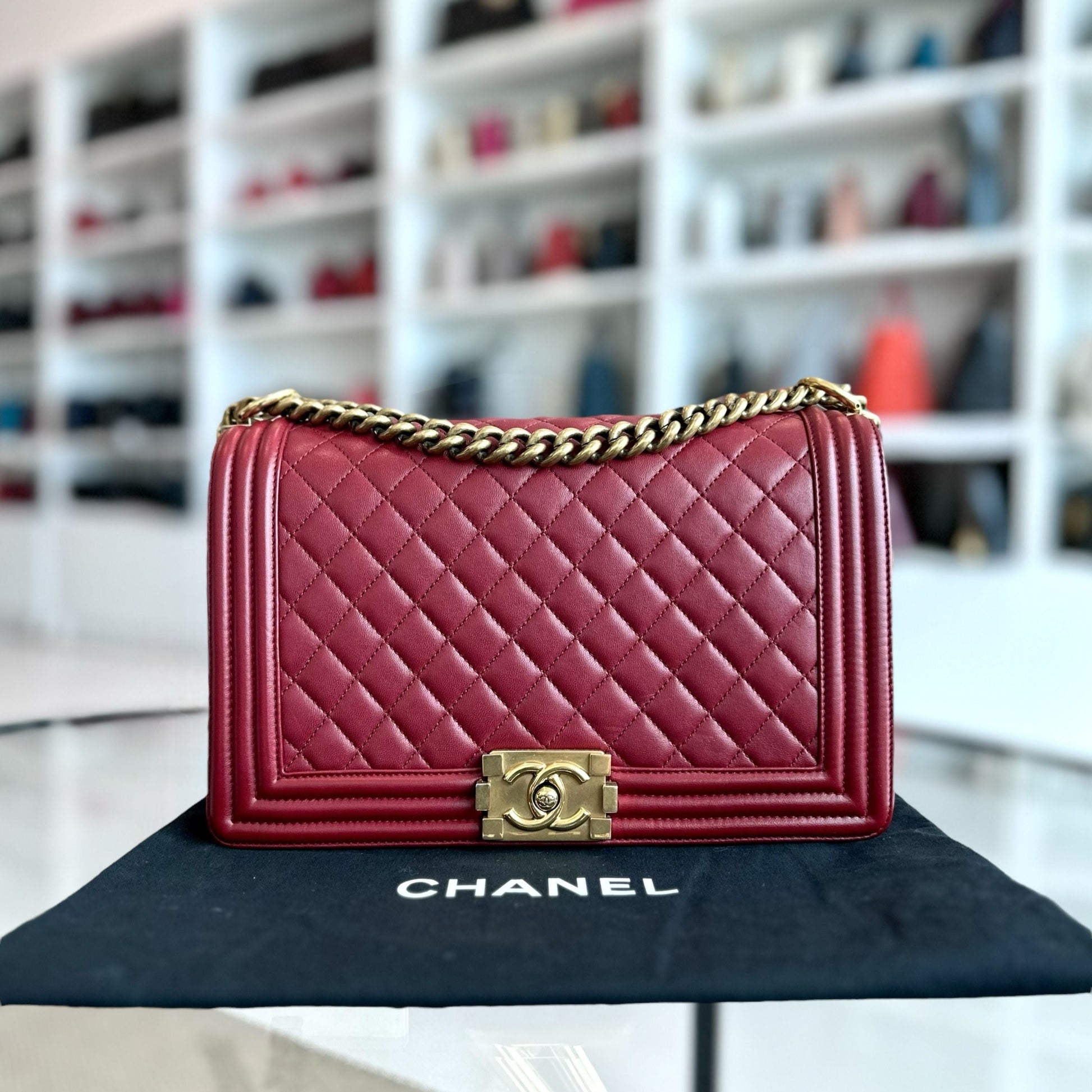 Boy New Medium 28CM Quilted Lambskin Leboy Burgundy GHW No 19