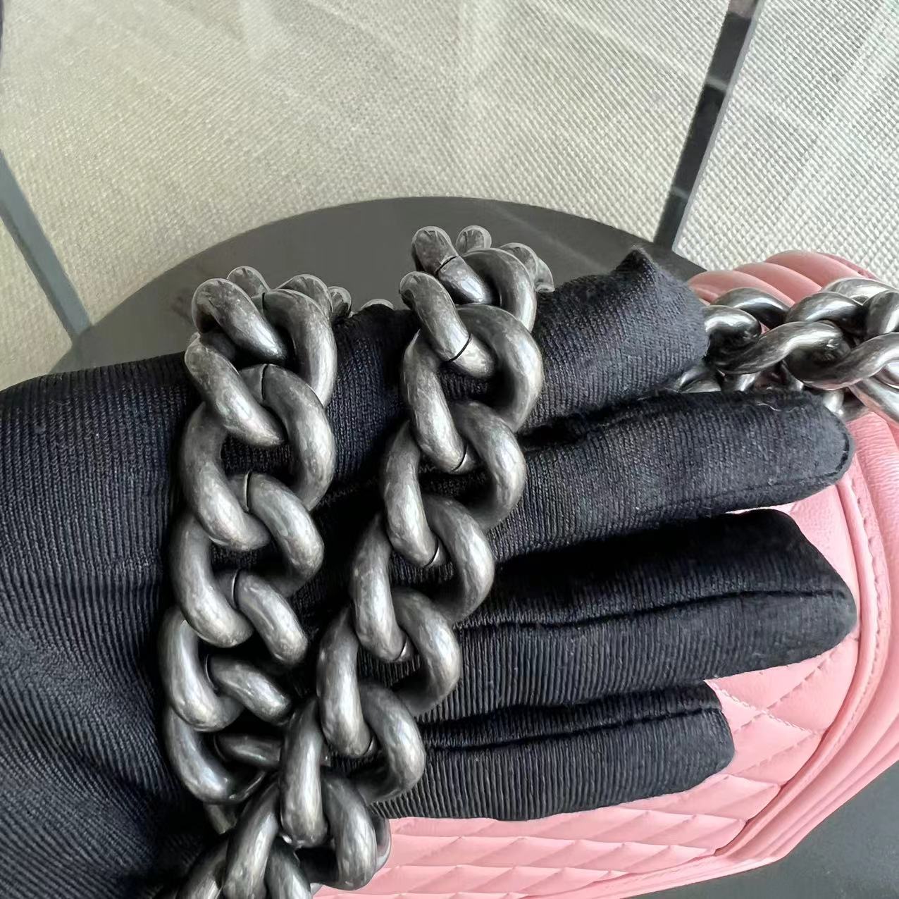 Boy New Medium 28CM Quilted Lambskin Sakura Pink Leboy Ruthenium Silver Hardware Series 20