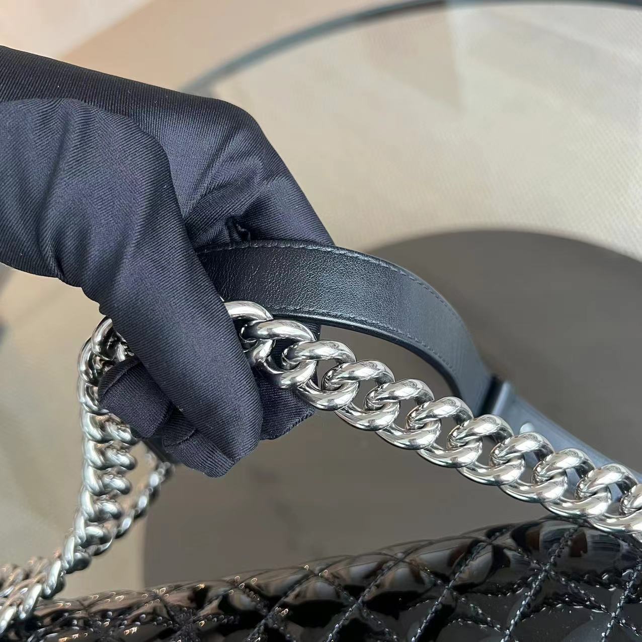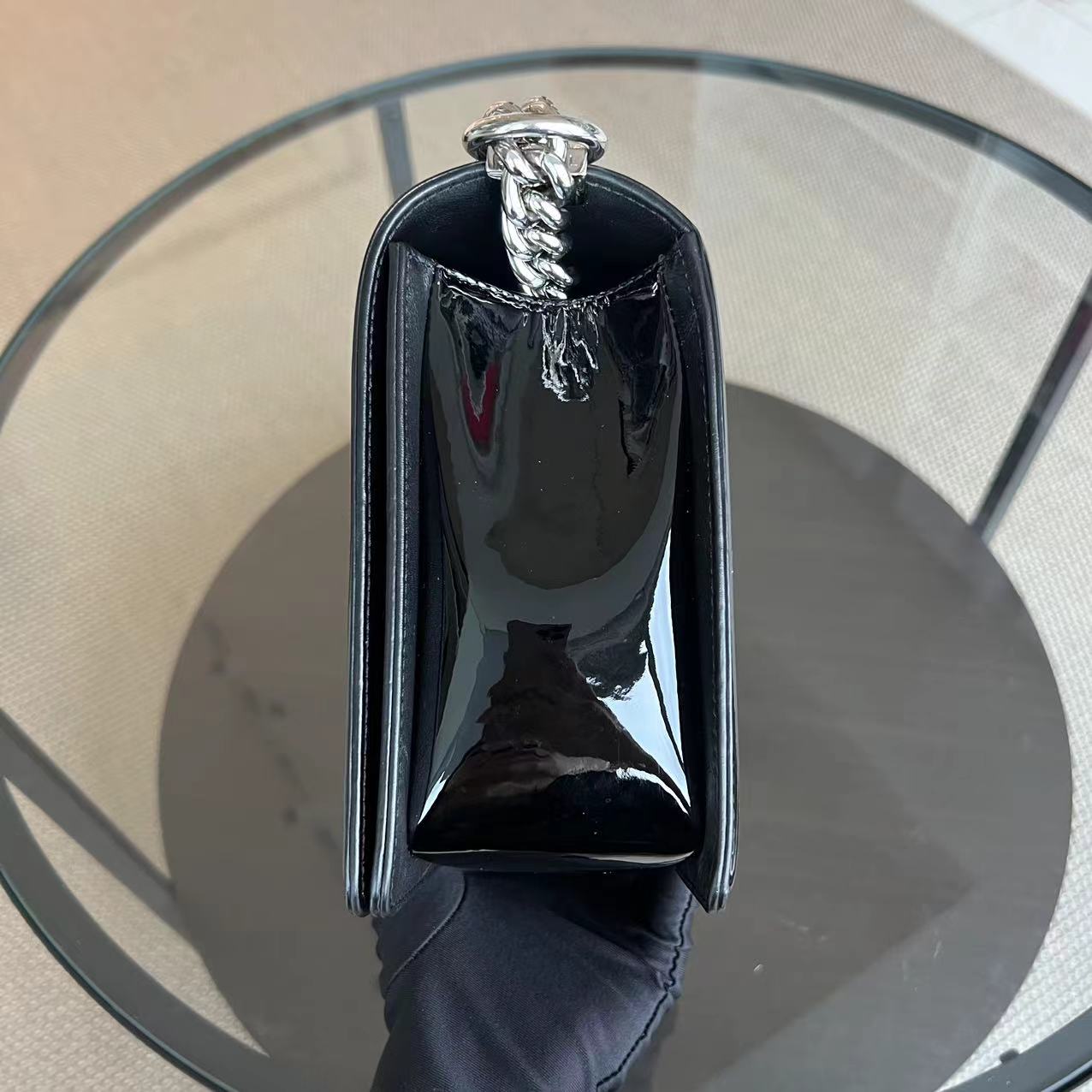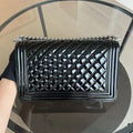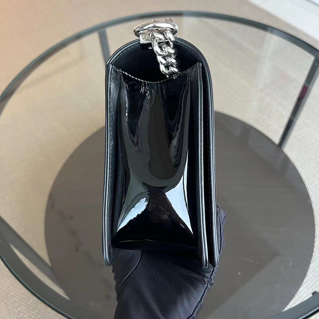 Boy New Medium 28CM Quilted Patent Calfskin Black Leboy Hardware Series 20