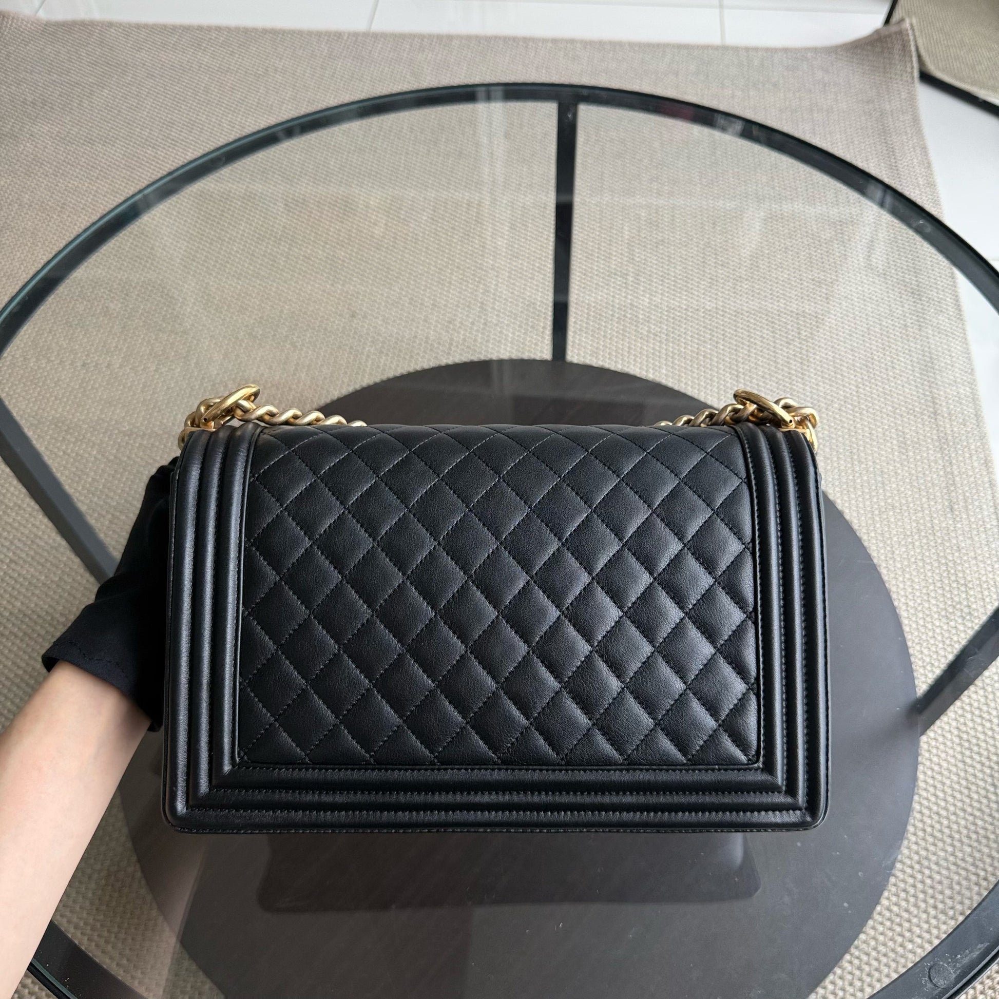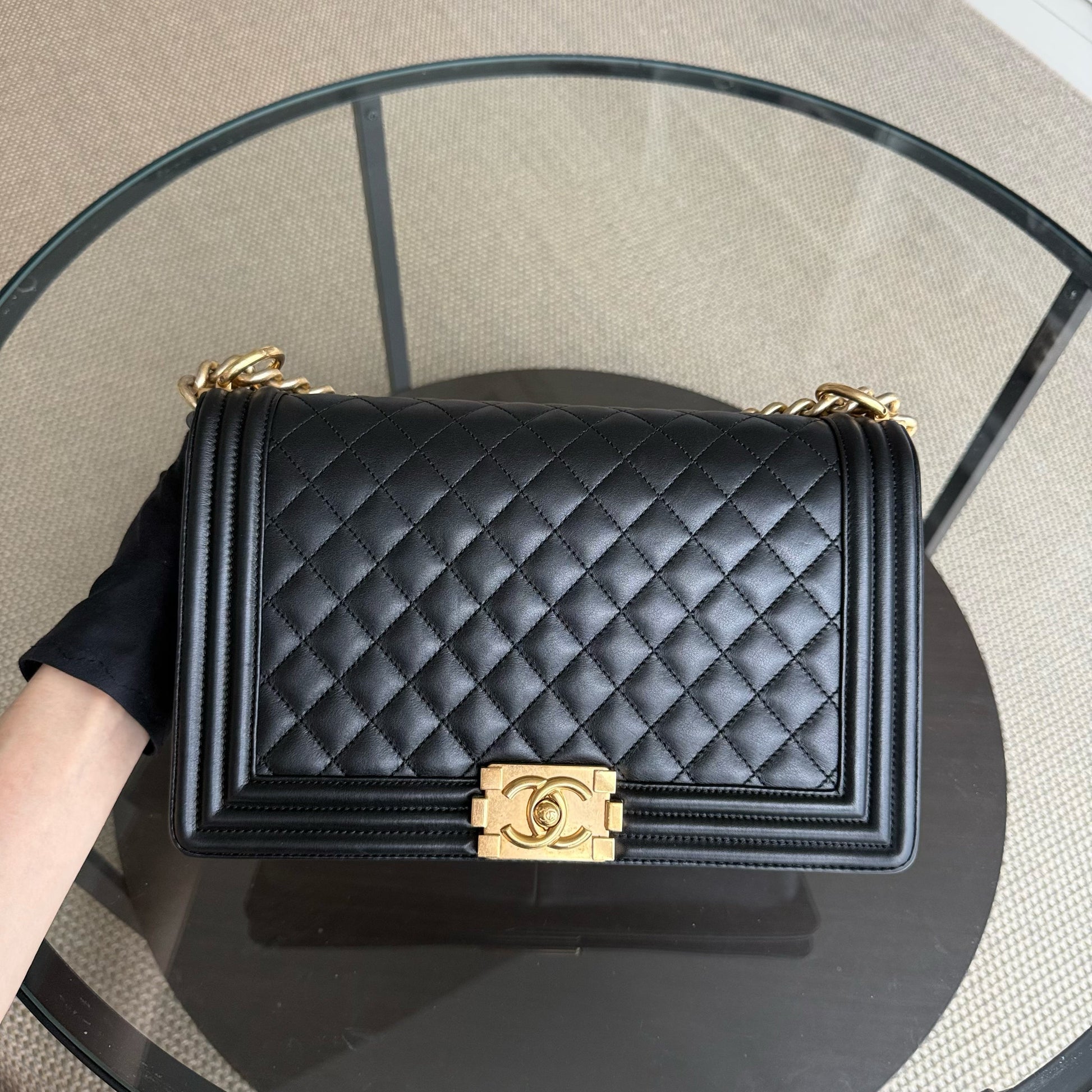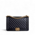 Chanel Boy New Medium - Calfskin 28CM Quilted Black Gold Hardware Series 20