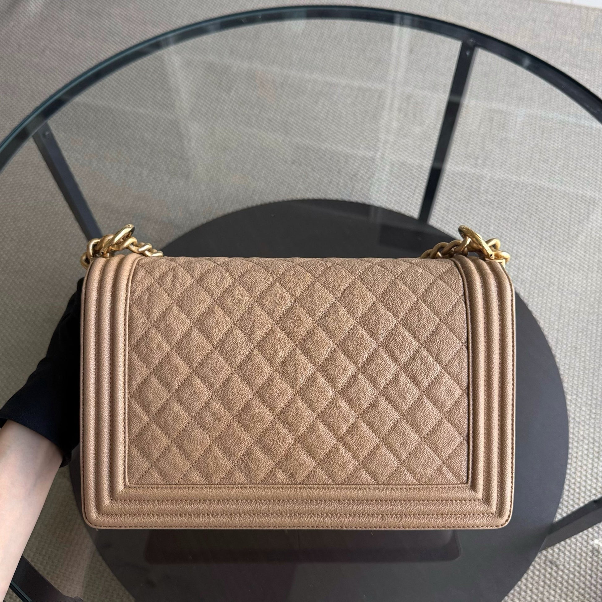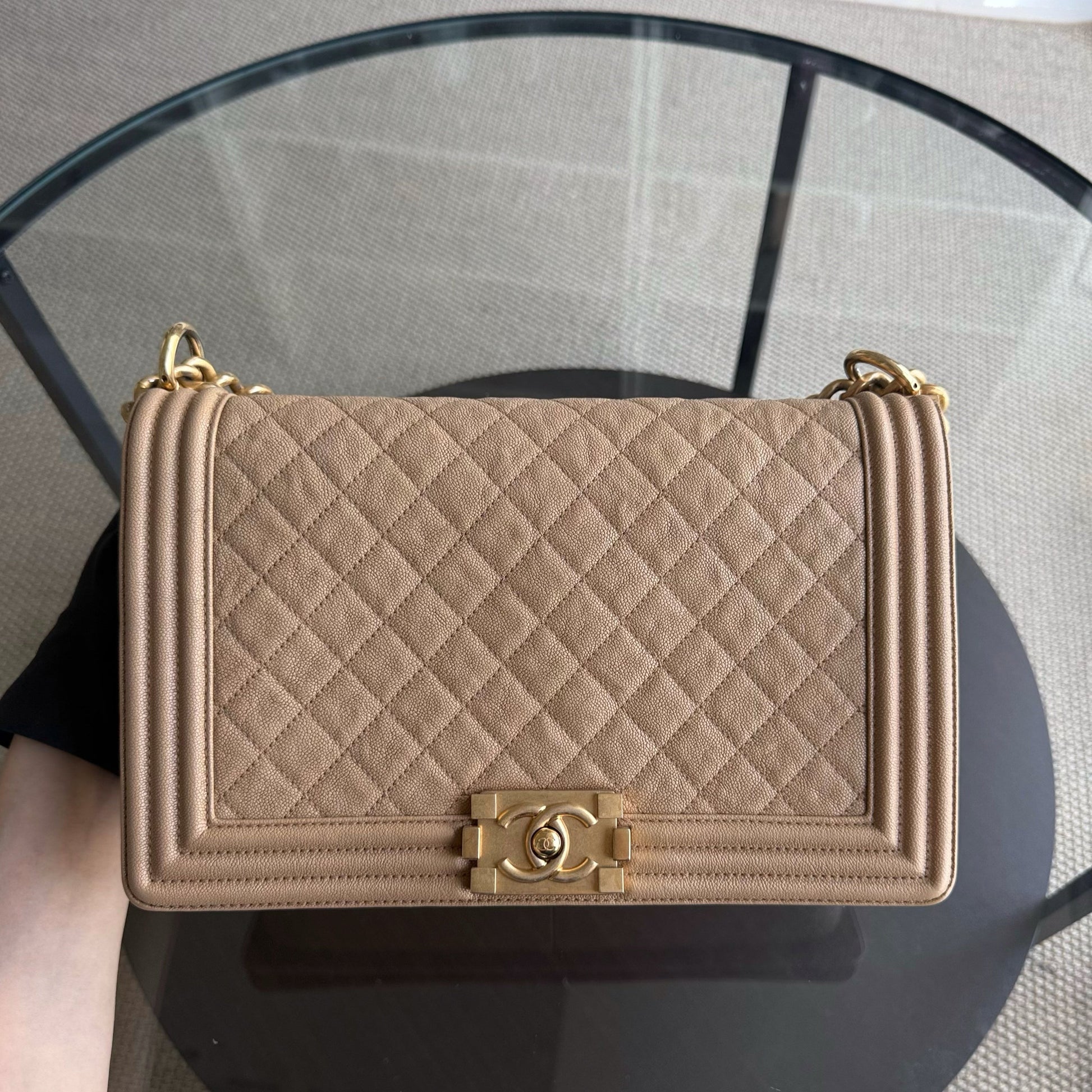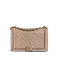 Chanel Boy New Medium - Caviar 28CM Quilted Beige Grained Calfskin Gold Hardware Series 28