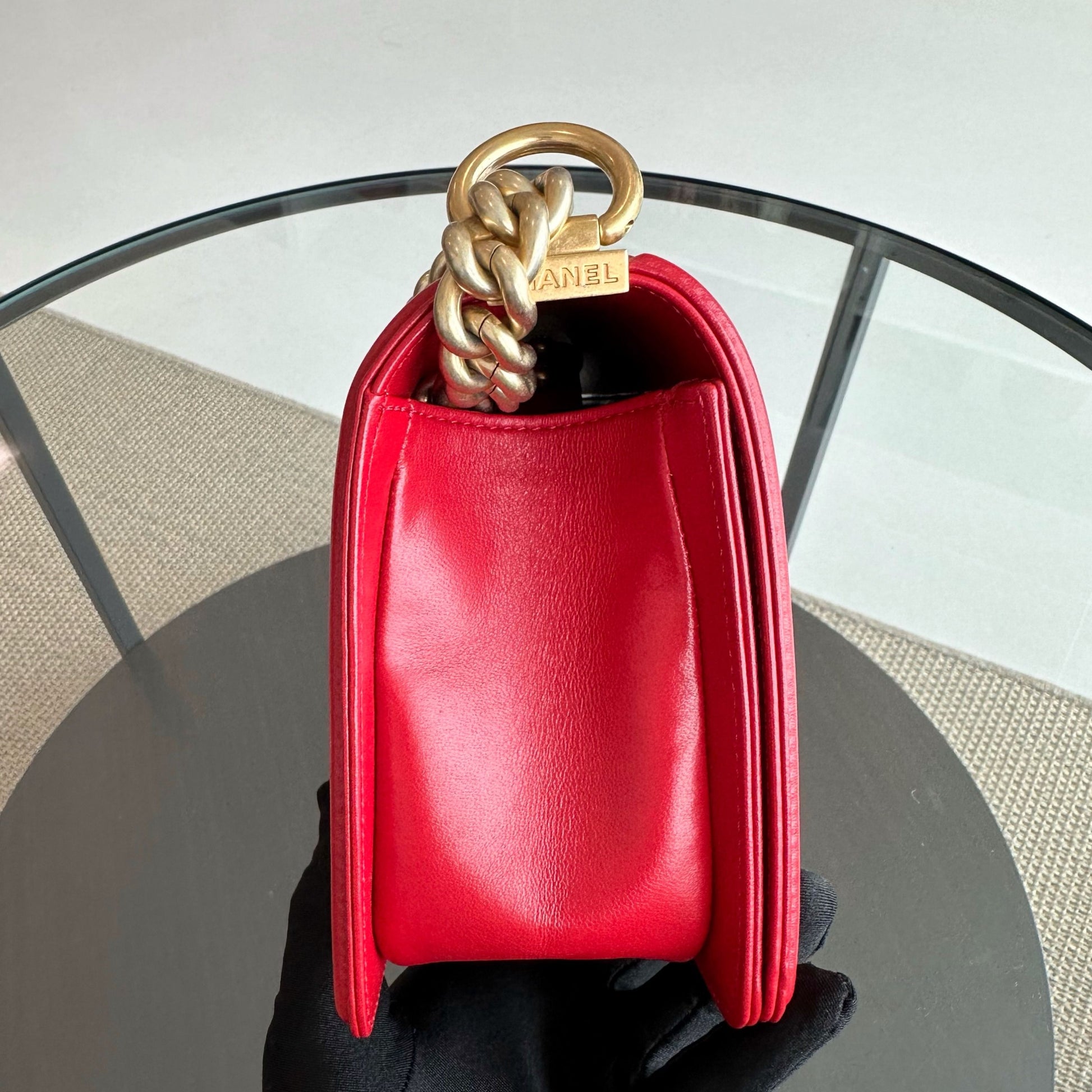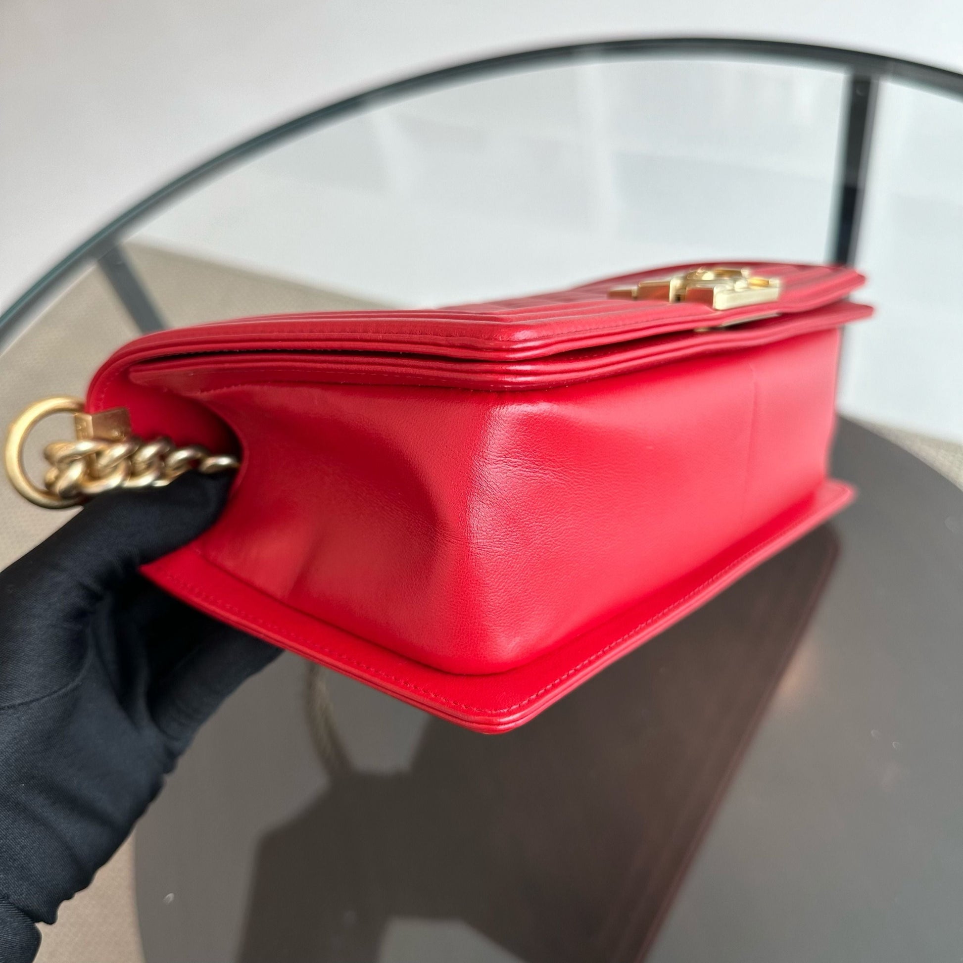 Boy Old Medium 25CM Lambskin Leboy Red GHW No 21