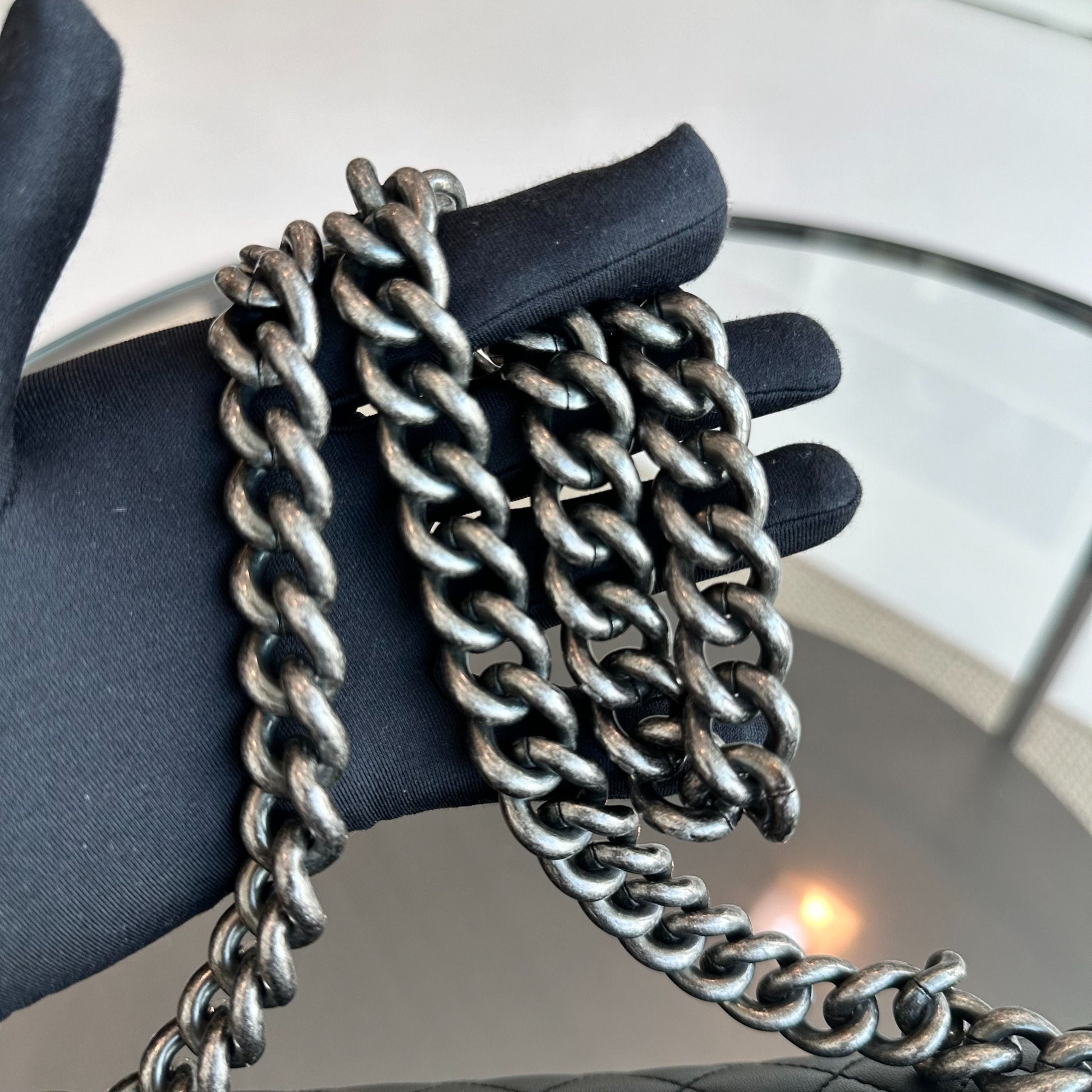 Boy Old Medium 25CM Lambskin Quilted Leboy Black RSHW No 23