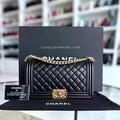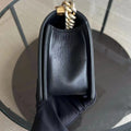 Boy Old Medium 25CM Quilted Lambskin Black Leboy Golden Hardware Series 23