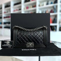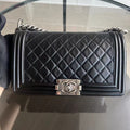 Boy Old Medium 25CM Quilted Calfskin Black Leboy Silver Hardware Series 17