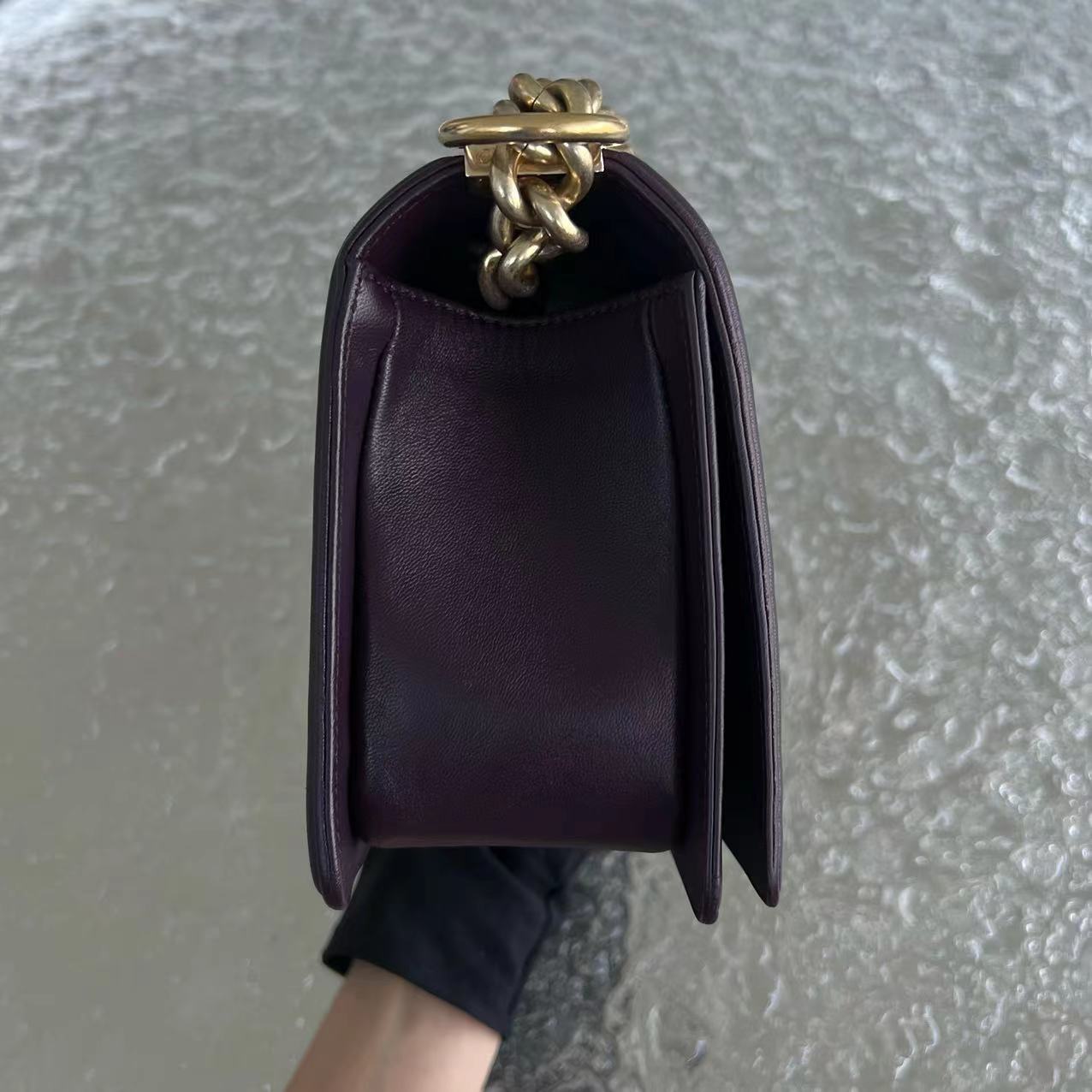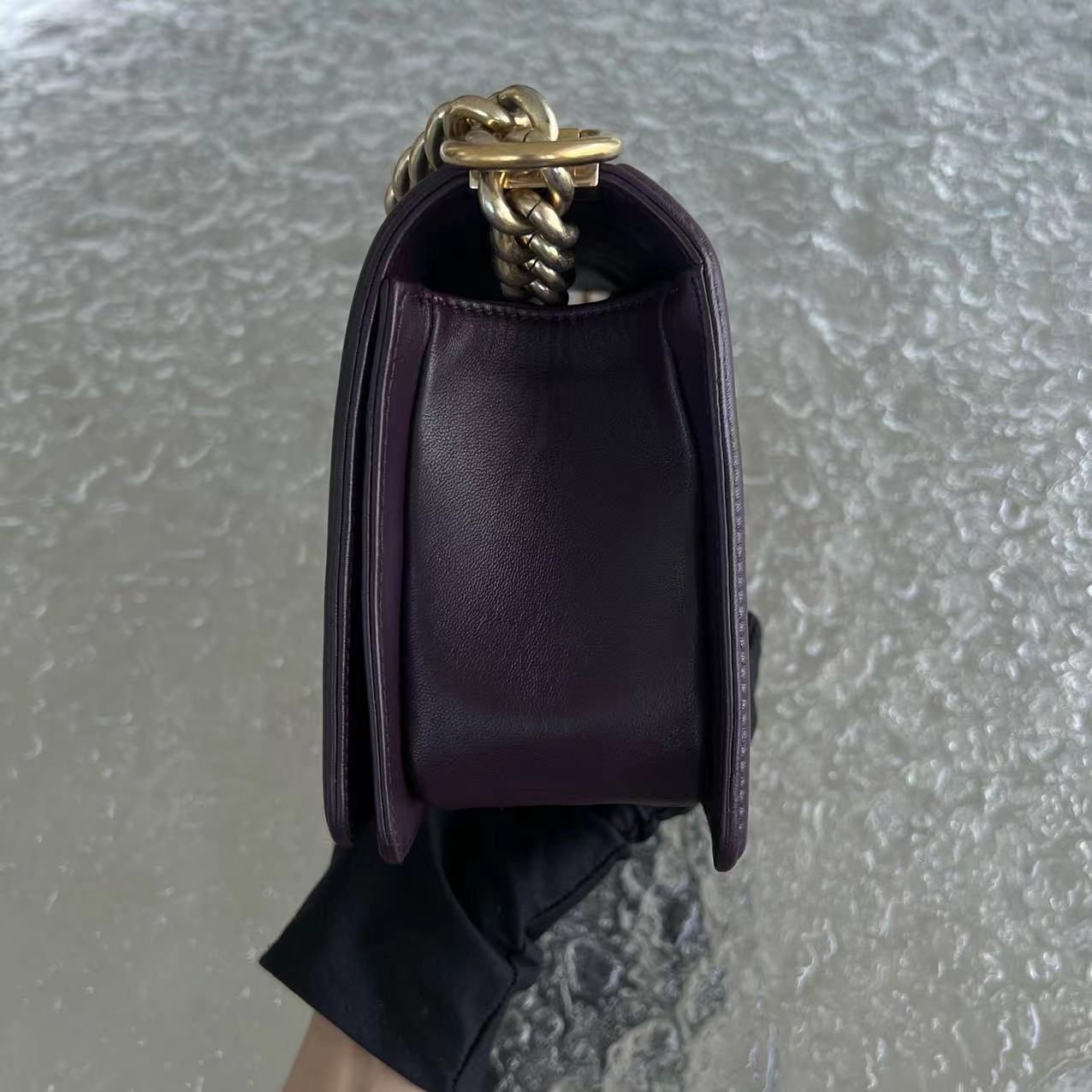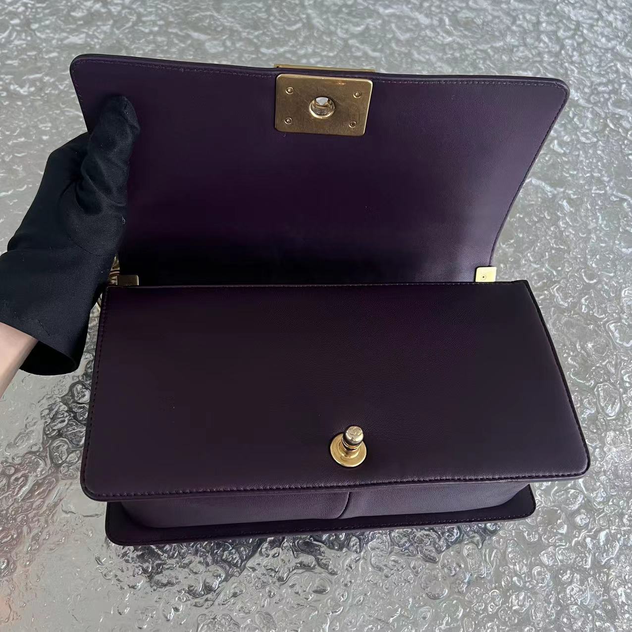 Boy Old Medium 25CM Quilted Lambskin Dark Purple Violet Leboy Golden Hardware Series 23