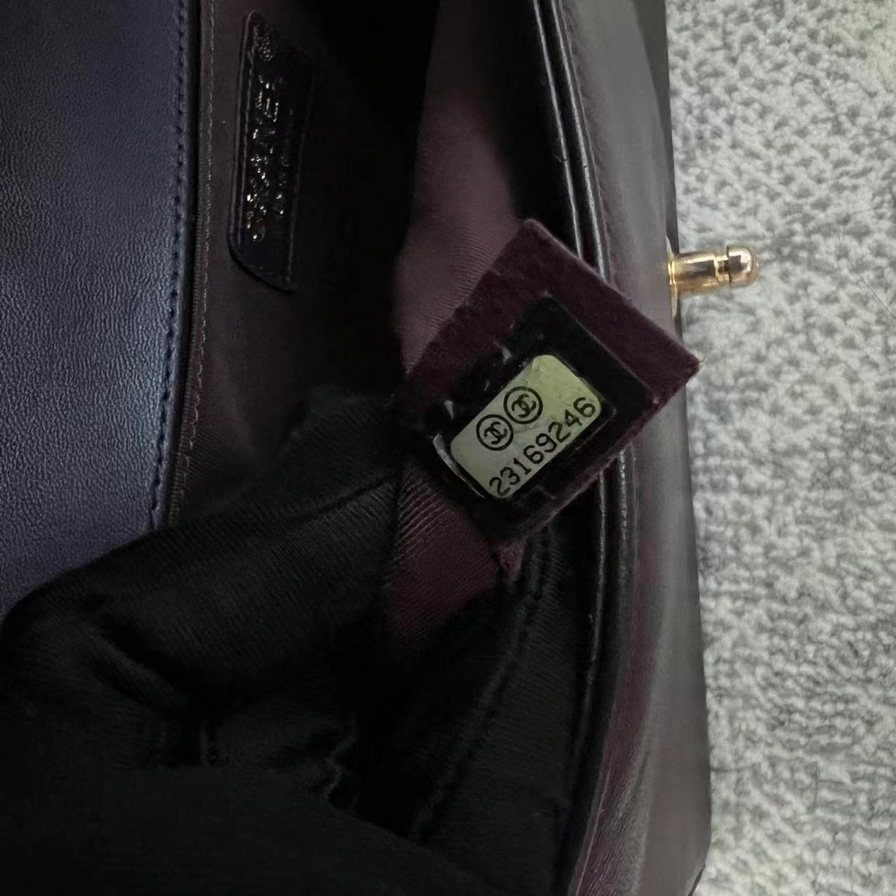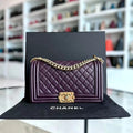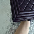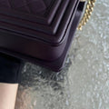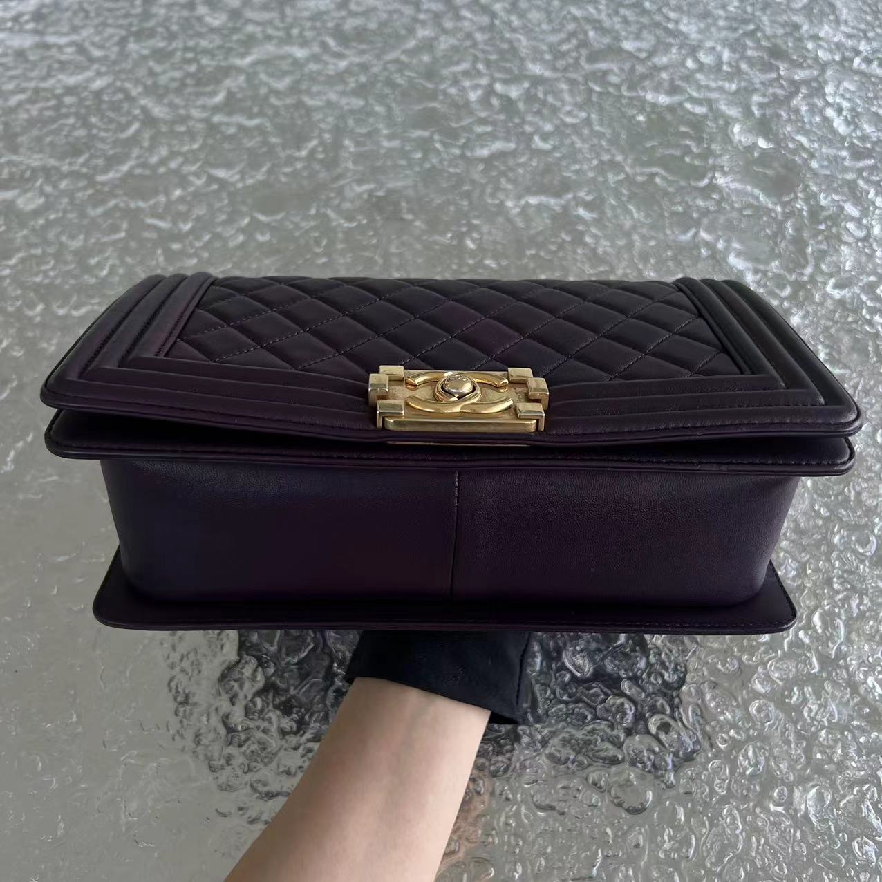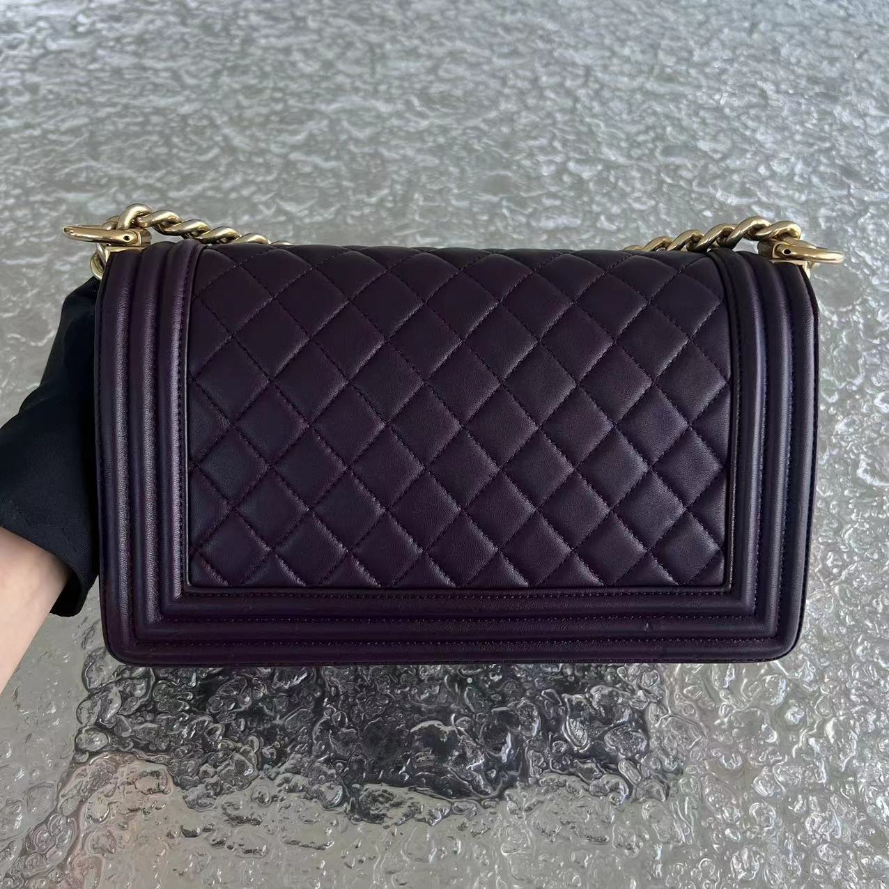 Boy Old Medium 25CM Quilted Lambskin Dark Purple Violet Leboy Golden Hardware Series 23