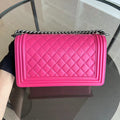 Boy Old Medium 25CM Quilted Lambskin Hot Pink Leboy Silver Hardware Series 19