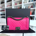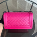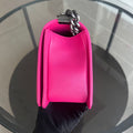 Boy OldMedium 25CM QuiltedLambskin Hot Pink Leboy Silver Hardware Series 19