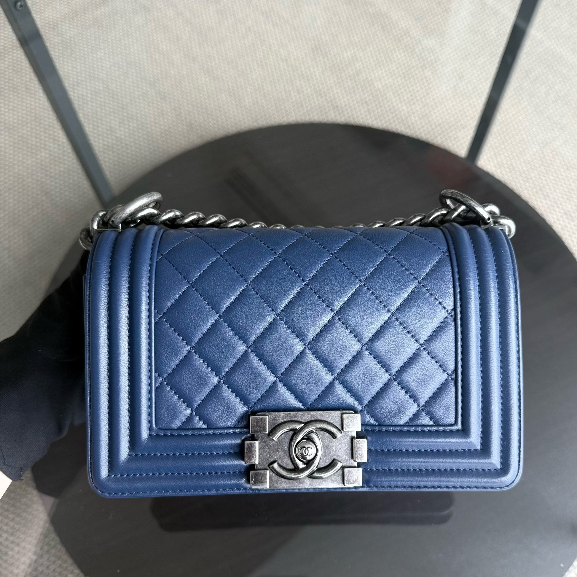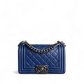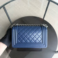 Chanel Boy Small - 20CM Quilted Lambskin Blue Ruthenium Silver Hardware