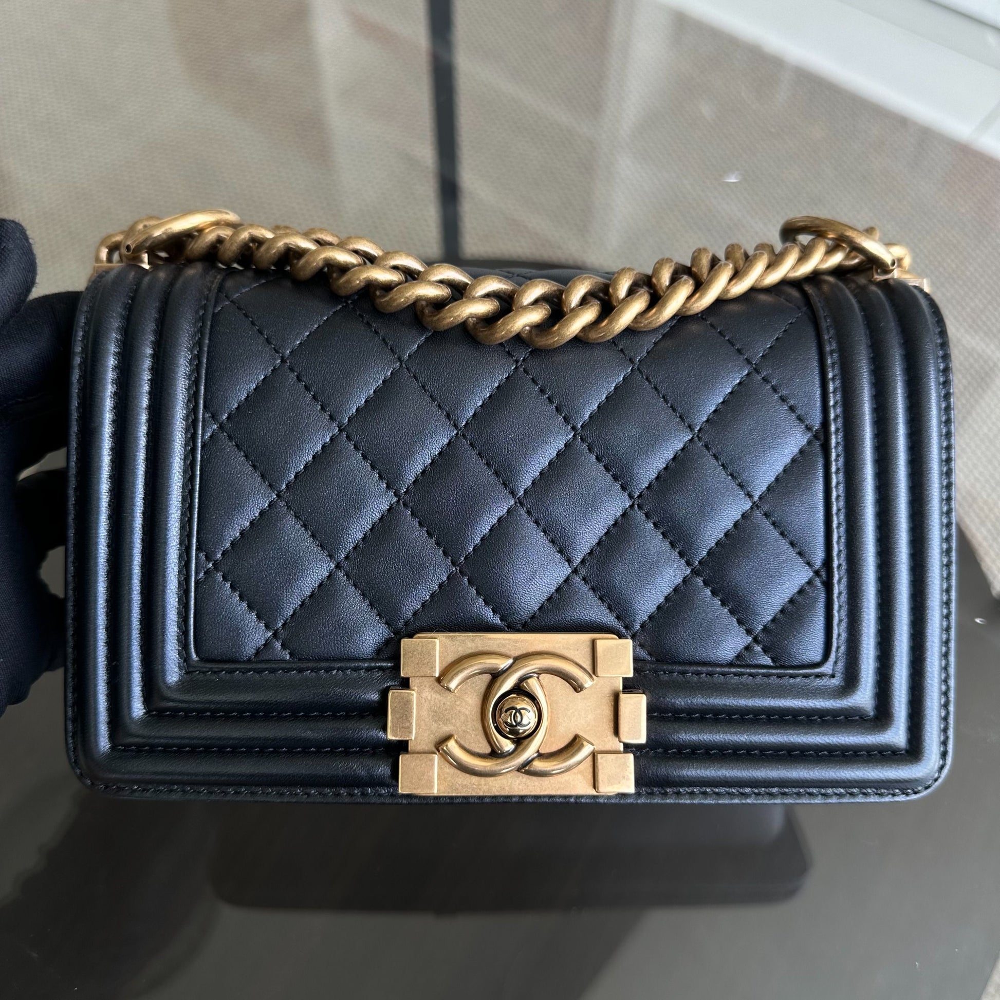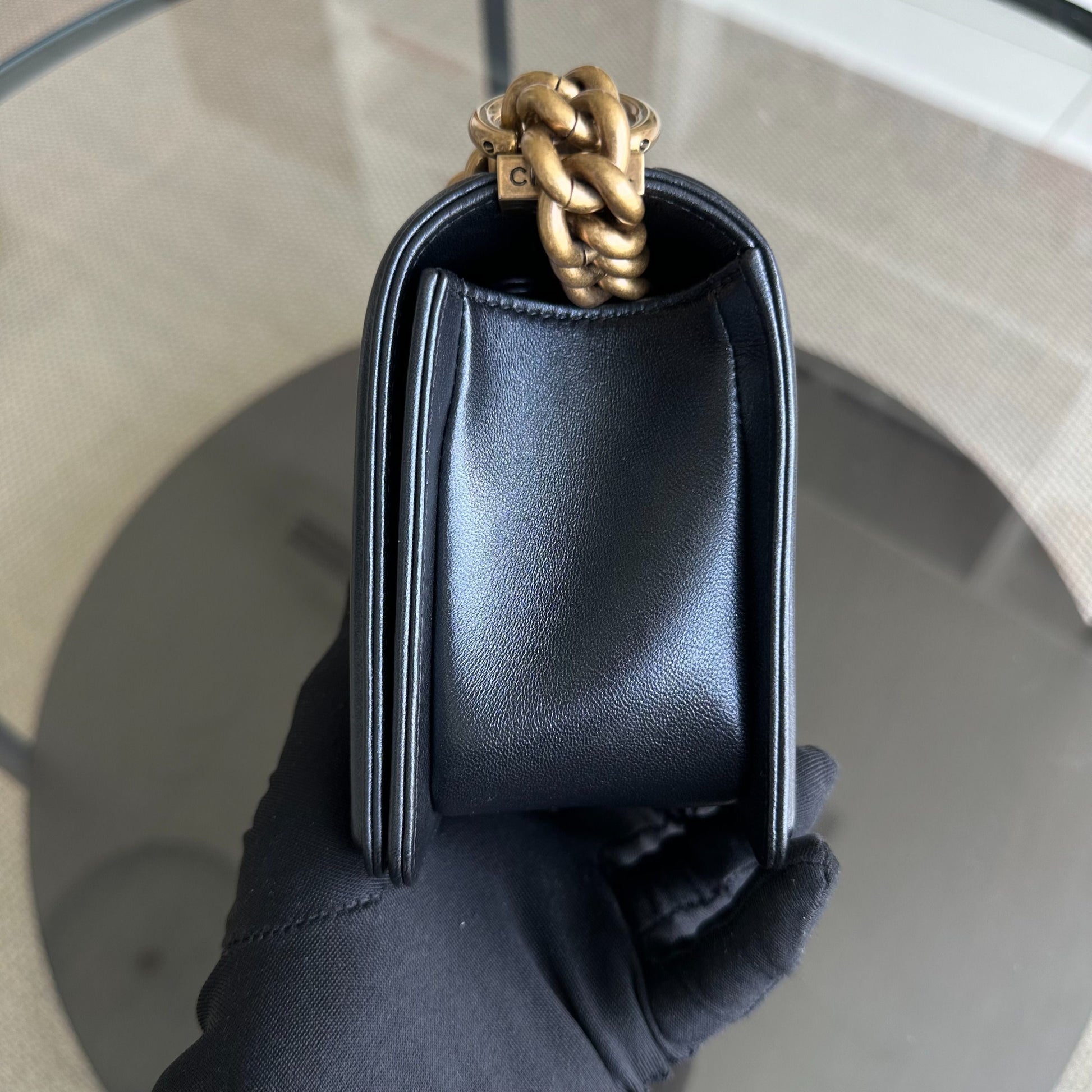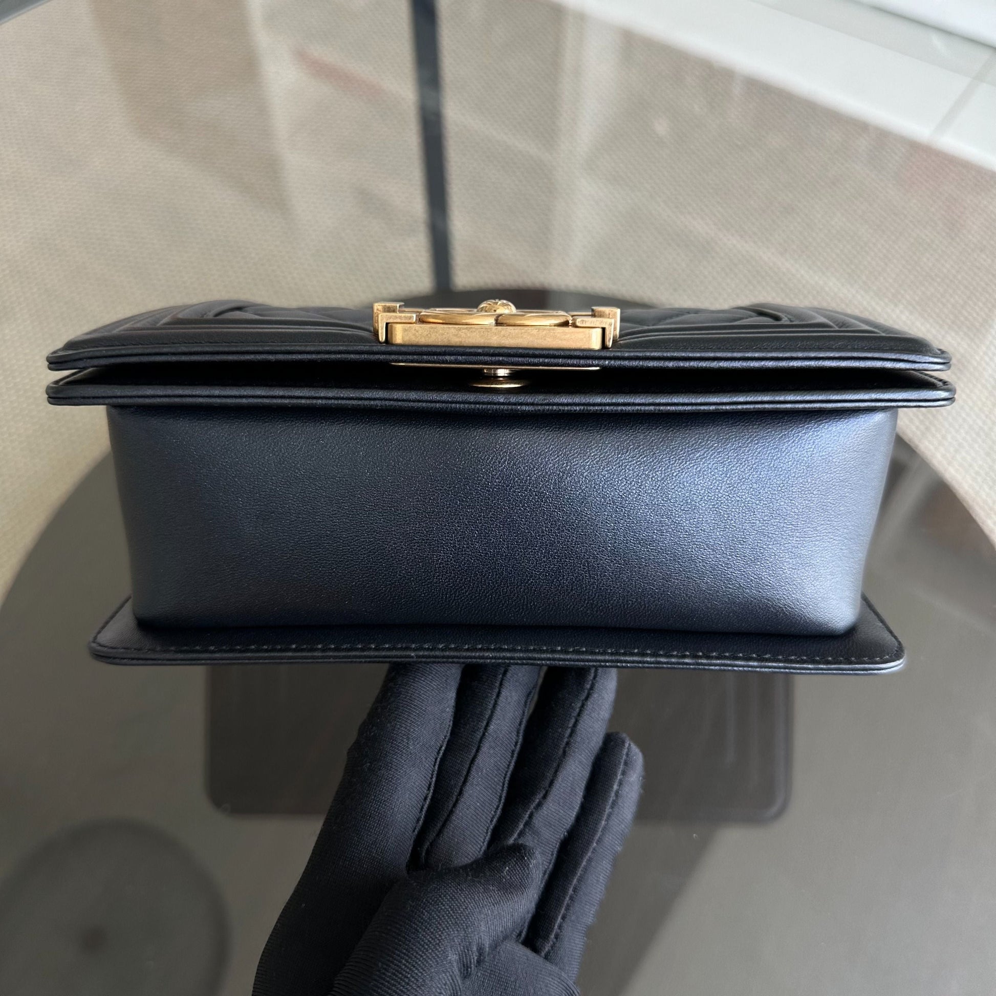 Boy Small 20CM Quilted Lambskin Leboy Iridescent Black GHW No 19